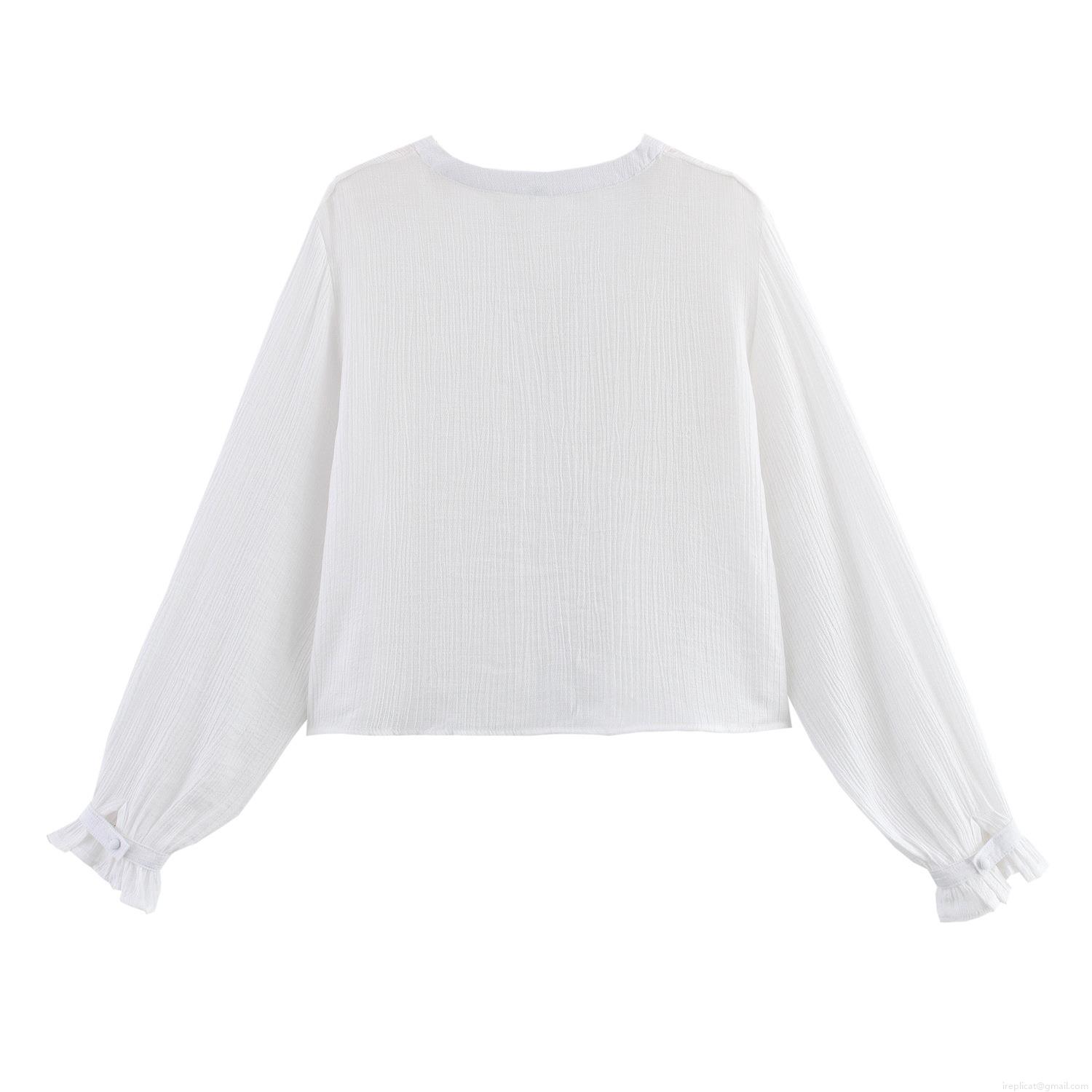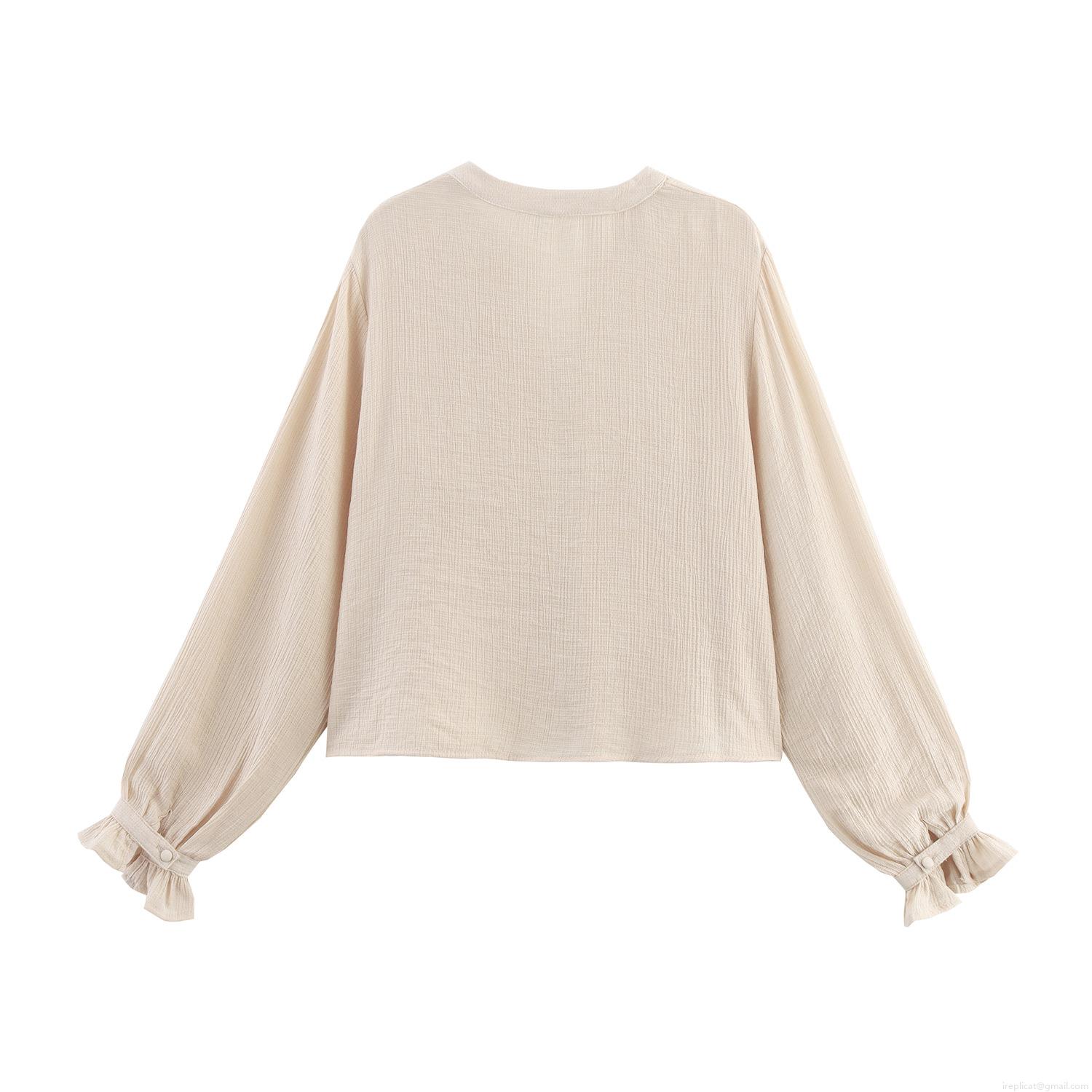 • Women's Vintage Bohemian Cotton Polyester Blouse Elegant V-Neck Embroidery Flower Button Down Long Sleeve Shirt With Ruffle Cuffs Casual Chic Tops