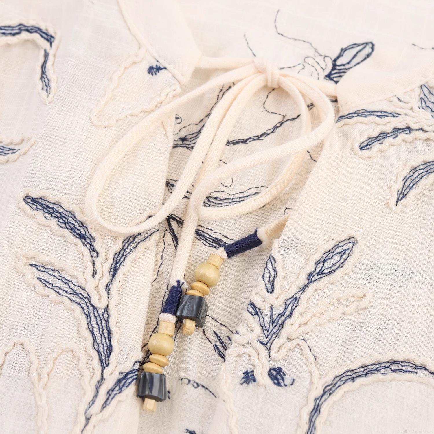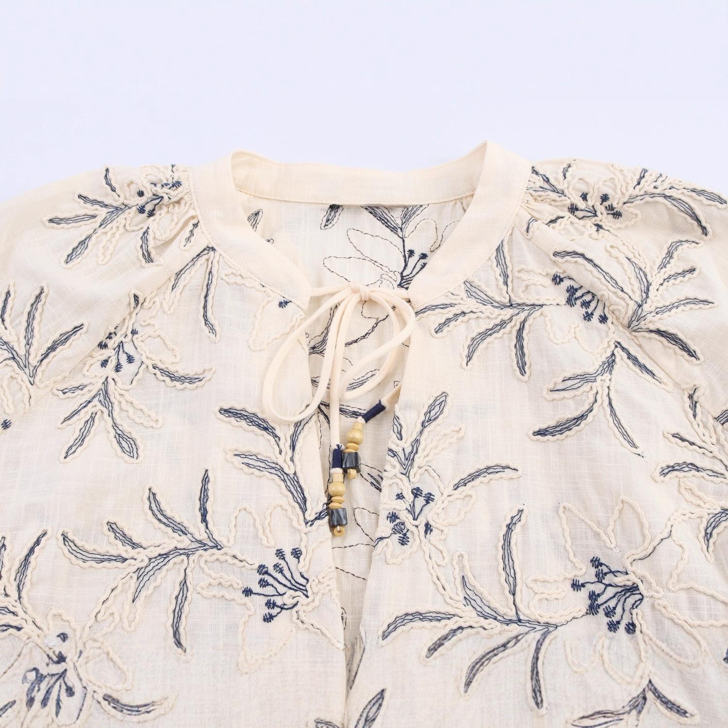 • Women's Vintage Bohemian Floral Embroidered Blouse Lantern Sleeve Tie V-Neck Ethnic Style Long Sleeve Top Casual Cotton Linen Texture Shirt for Women