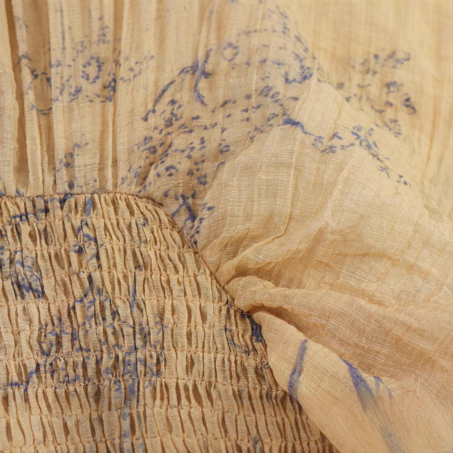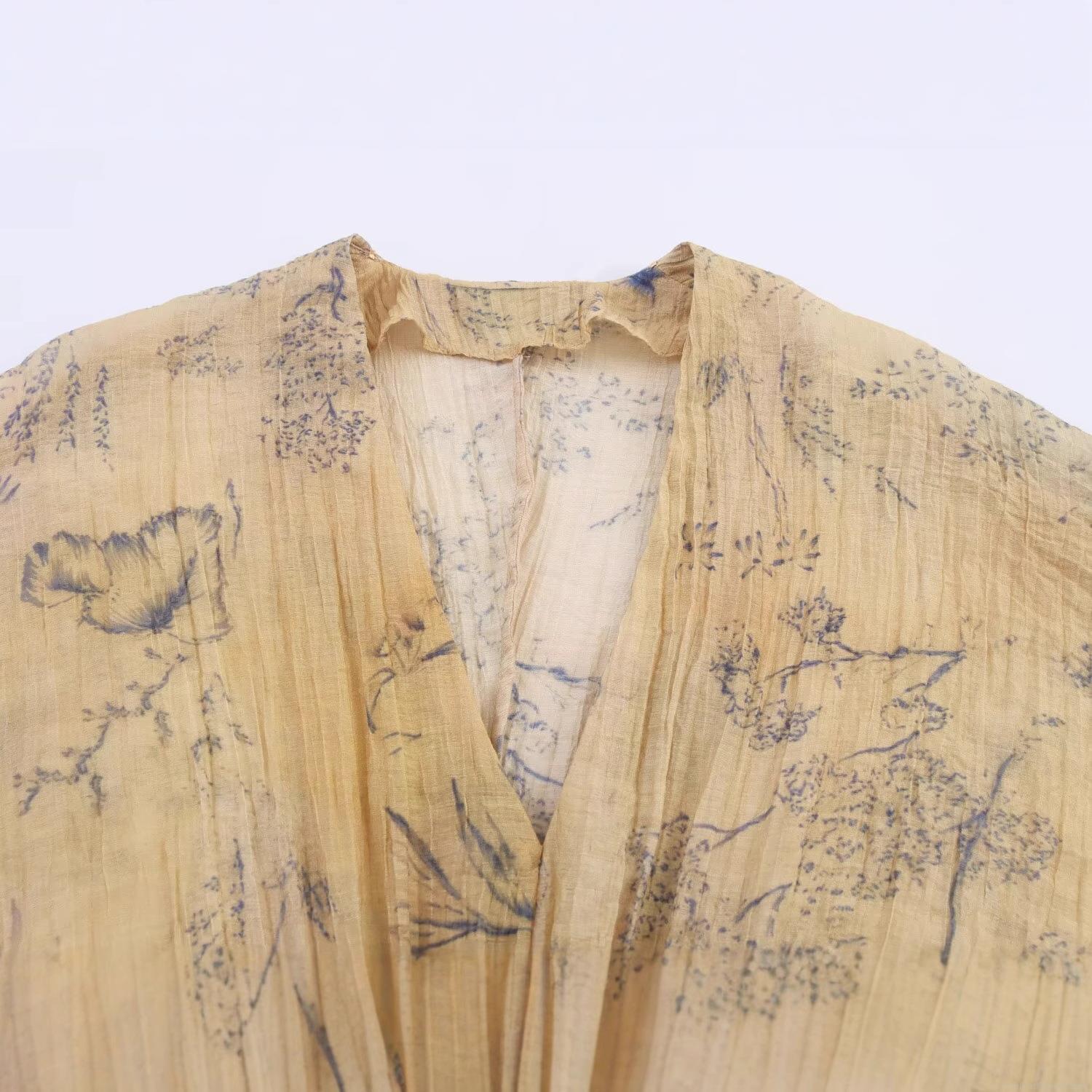 Floral Pattern, Plants And Flowers, Lantern Sleeves, Distressed Look, Pleating Process, Deep V-neck, Gather And Pleat, Landscape Print