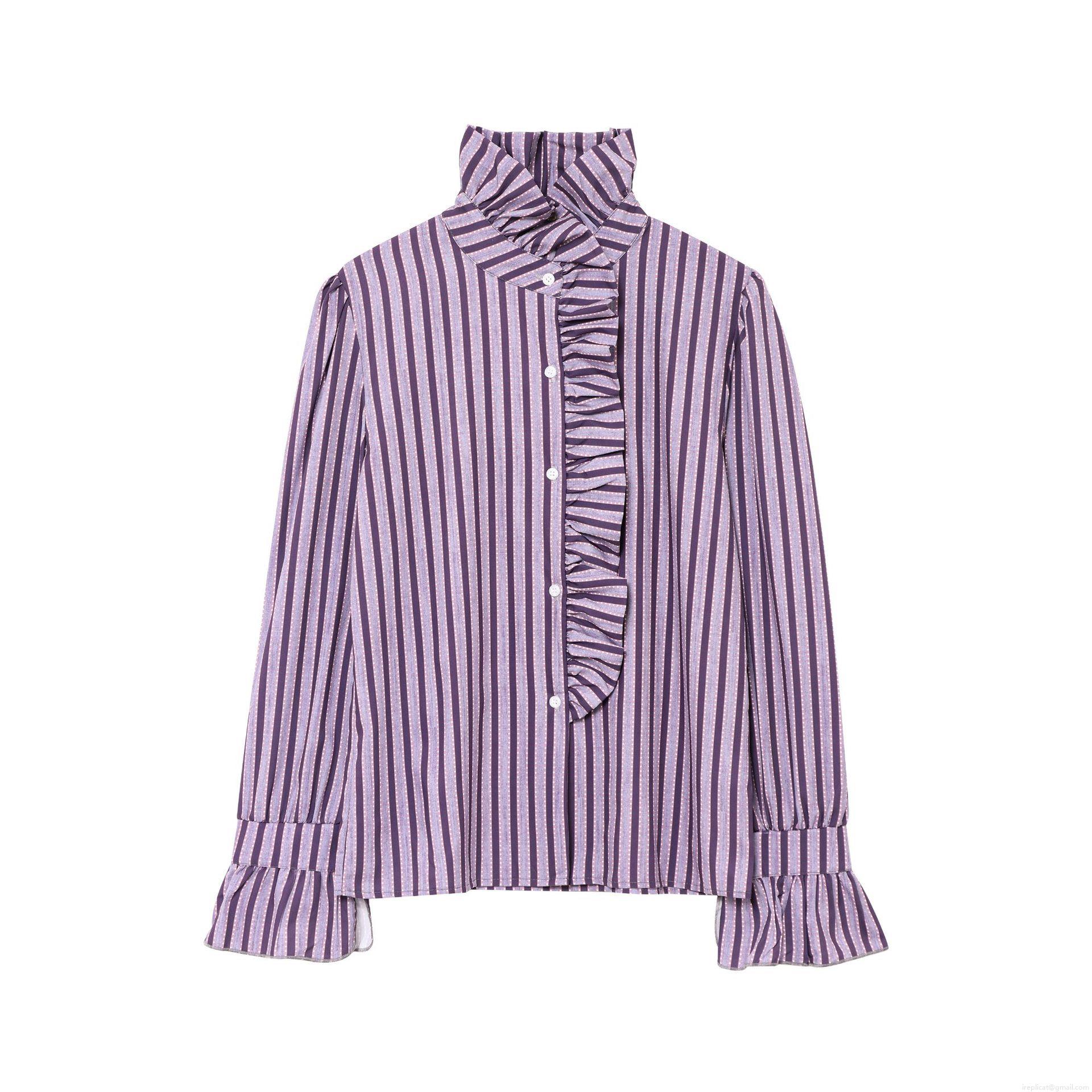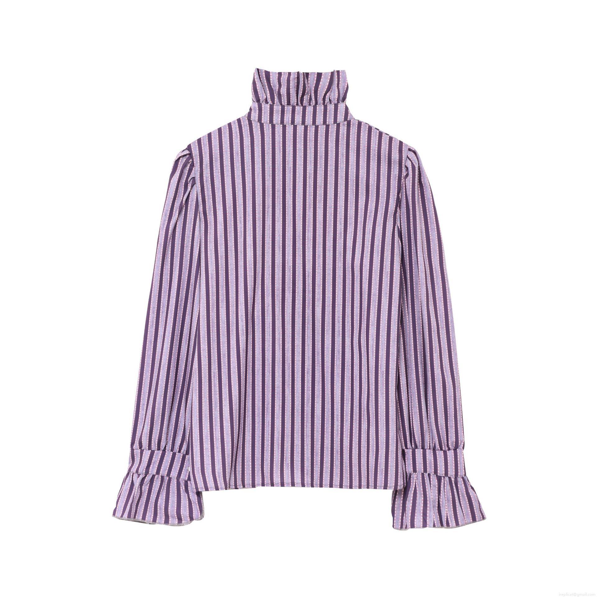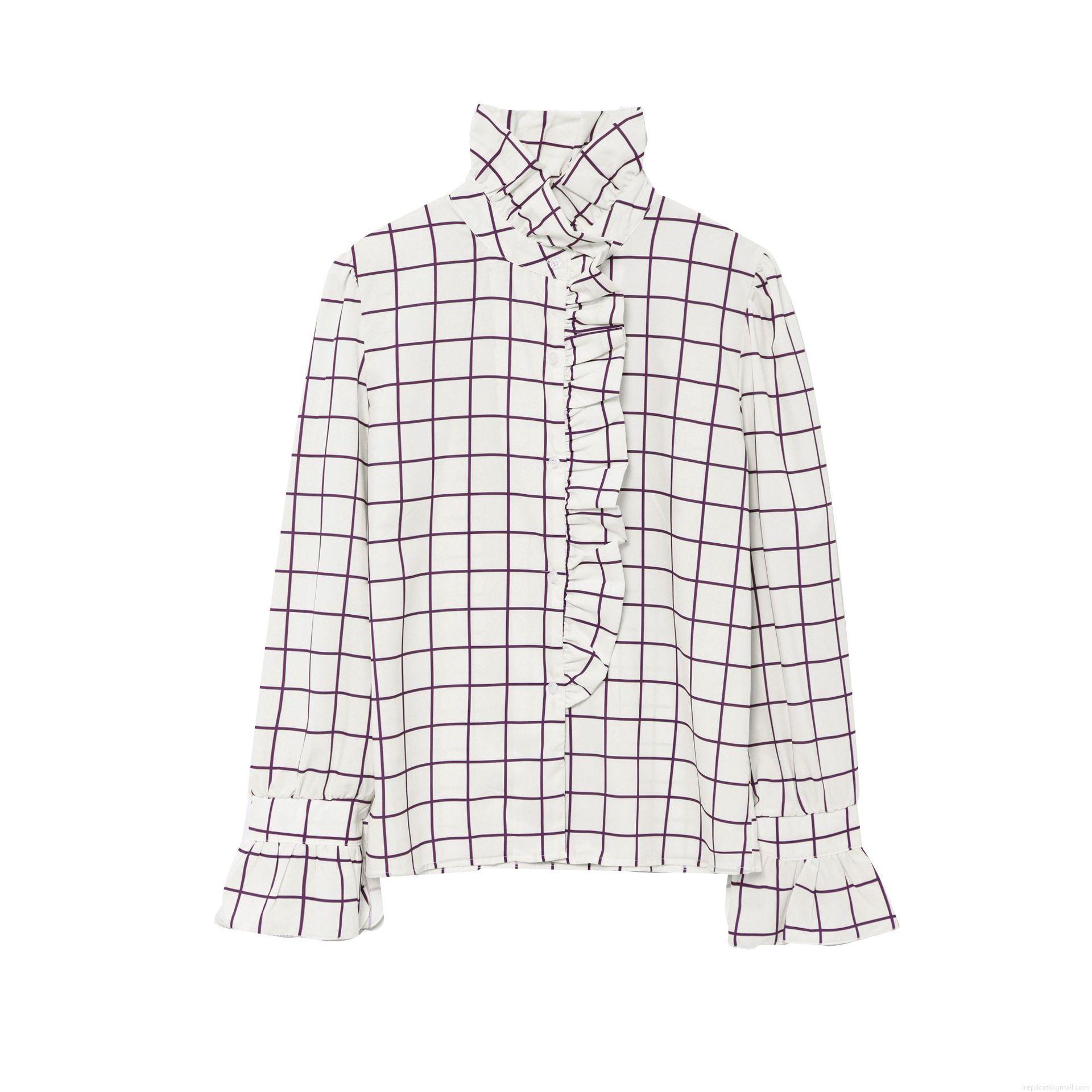 • Women's Vintage Elegant Ruffle Stand Collar Long Sleeve Blouse Purple Plaid Stripe Polka Dot Print Shirt Single Breasted Casual Polyester Tops for Women