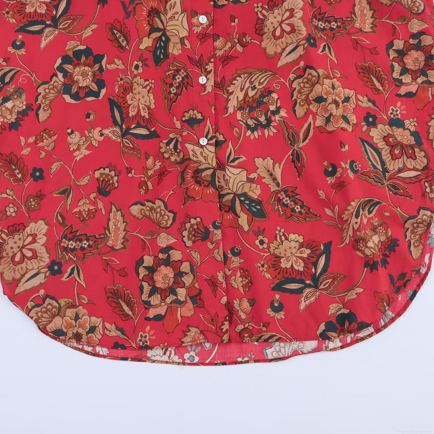 • Women's Vintage Floral Print Long Sleeve Shirt Casual Button Down Poplin Blouse Red Longline Loose Fit Top For Ladies Spring Autumn Outfits