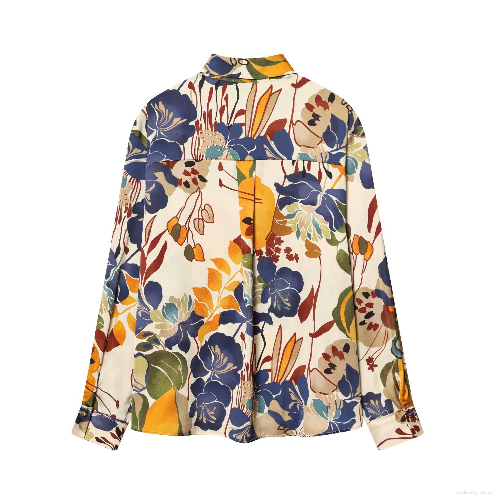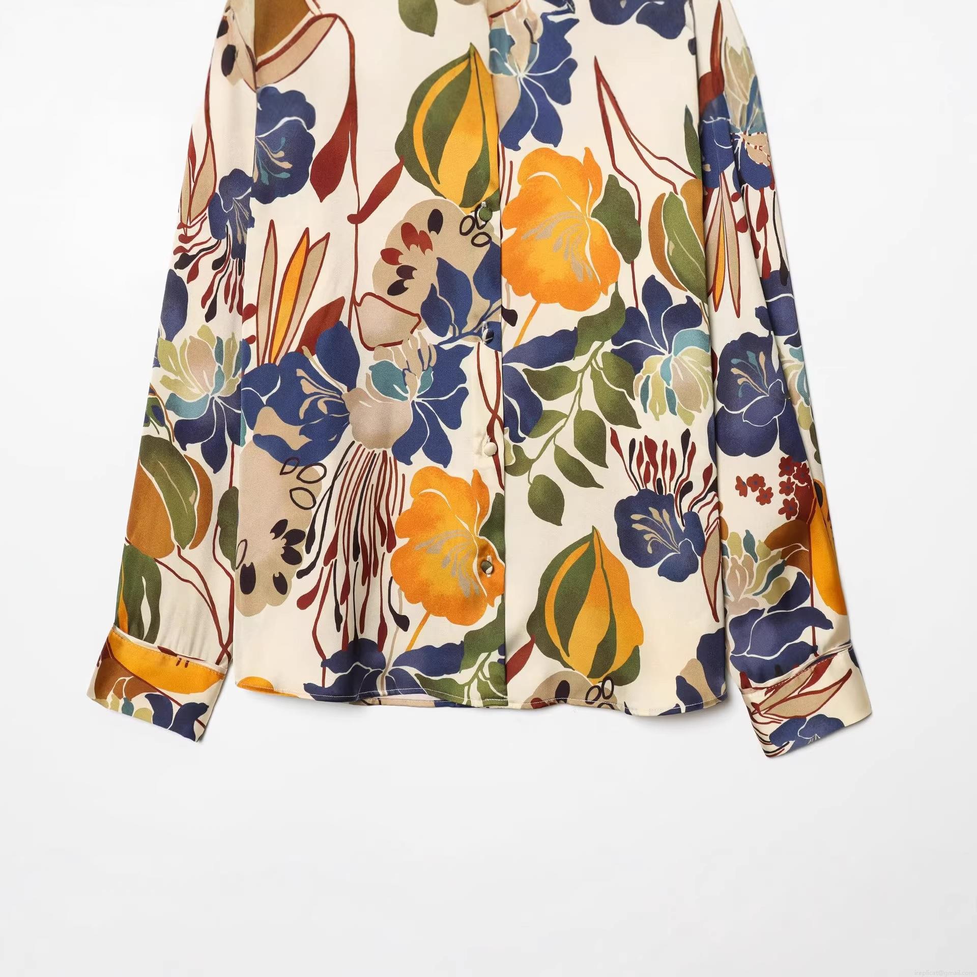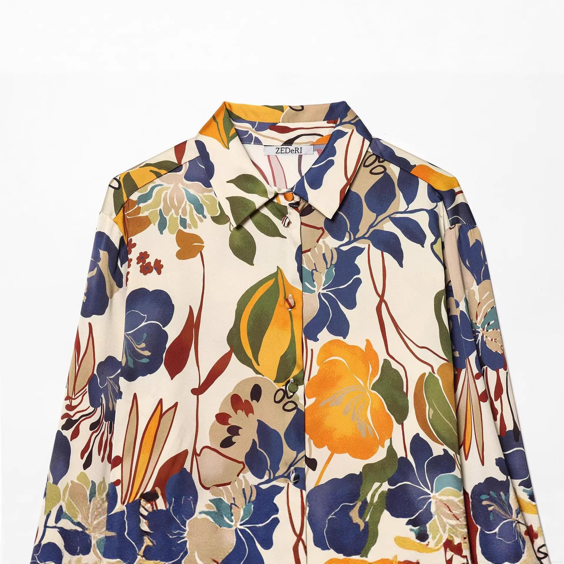 • Women's Vintage Floral Print Long Sleeve Shirt Elegant Twill Satin Button Down Blouse Office Daily Casual Chic Polyester Top Retro Botanical Pattern