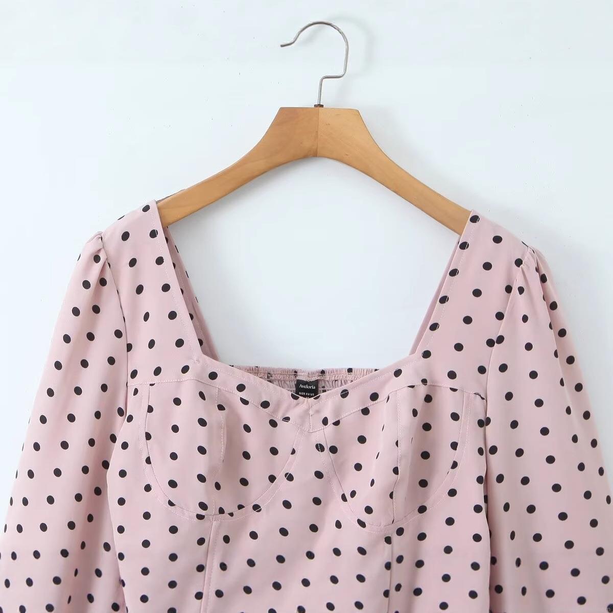 • Women's Vintage Pink Black Polka Dot Blouse Square Neck Puff Sleeve Top Retro Smocked Elastic Slim Fit Long Sleeve Streetwear Casual Party Spring Autumn Fashion Polyester Top
