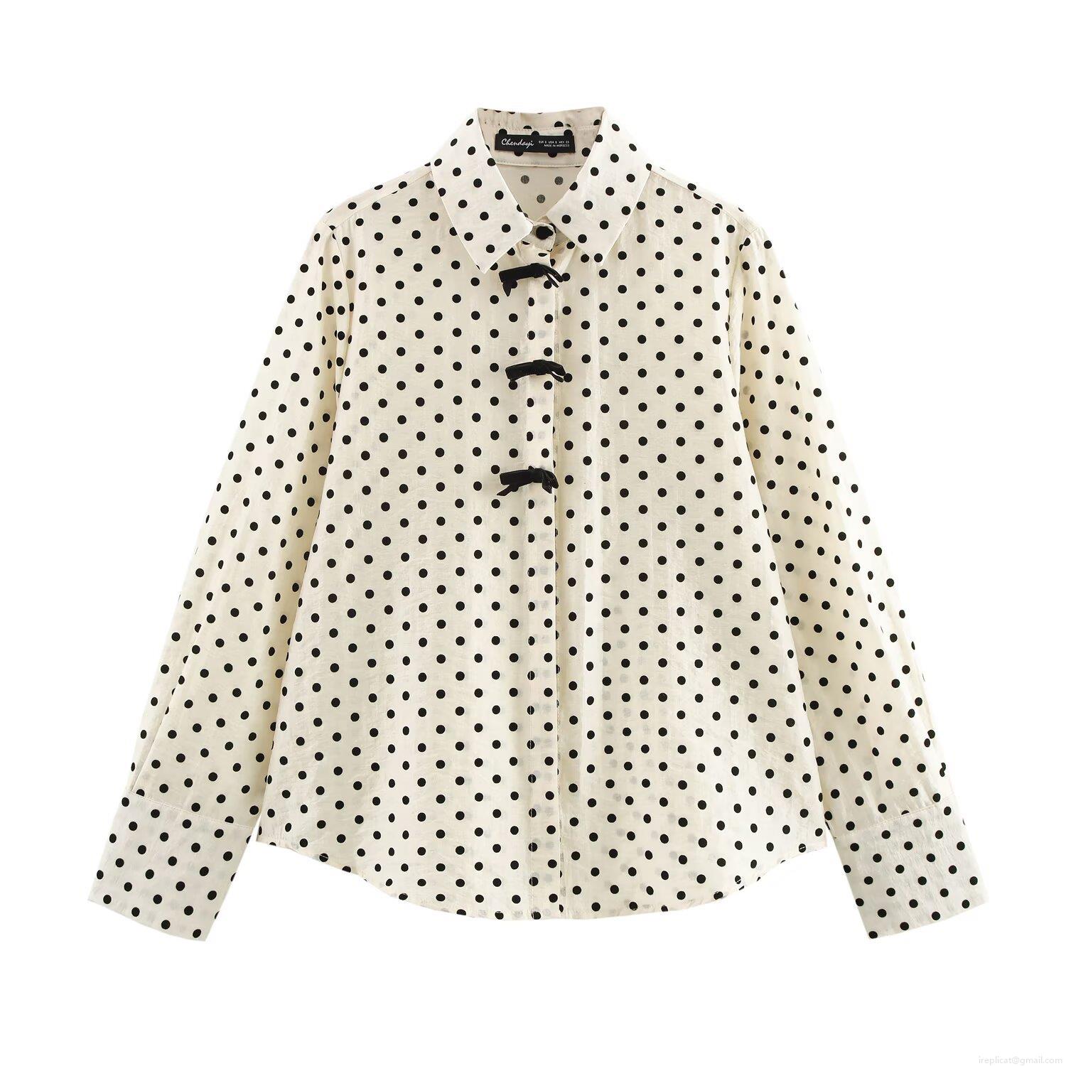 • Women's Vintage Polka Dot Bow Long Sleeve Blouse Elegant Turn-down Collar Polyester Shirt Casual Streetwear Tops For Party Dating Daily Women Clothing
