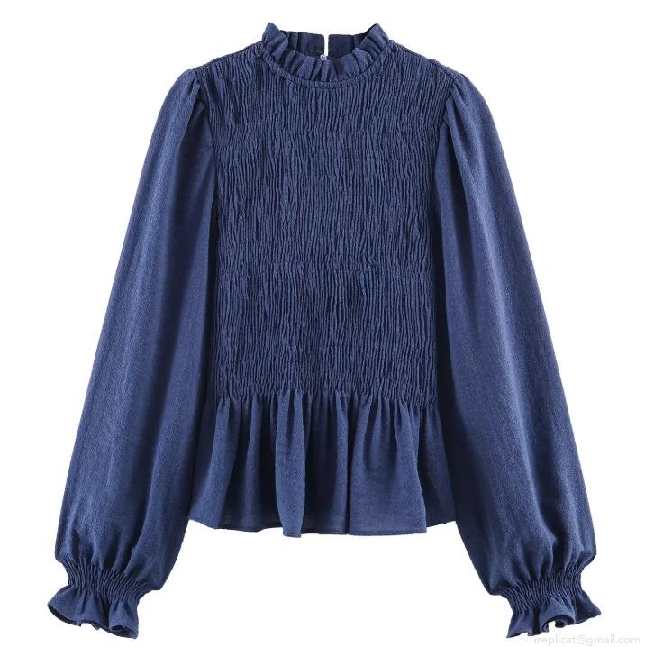 • Women's Vintage Smocked Blouse Ruffle High Neck Long Sleeve Gingham Plaid Top Elegant Sweet Shirred Polyester Shirt For Daily Office Casual Lady