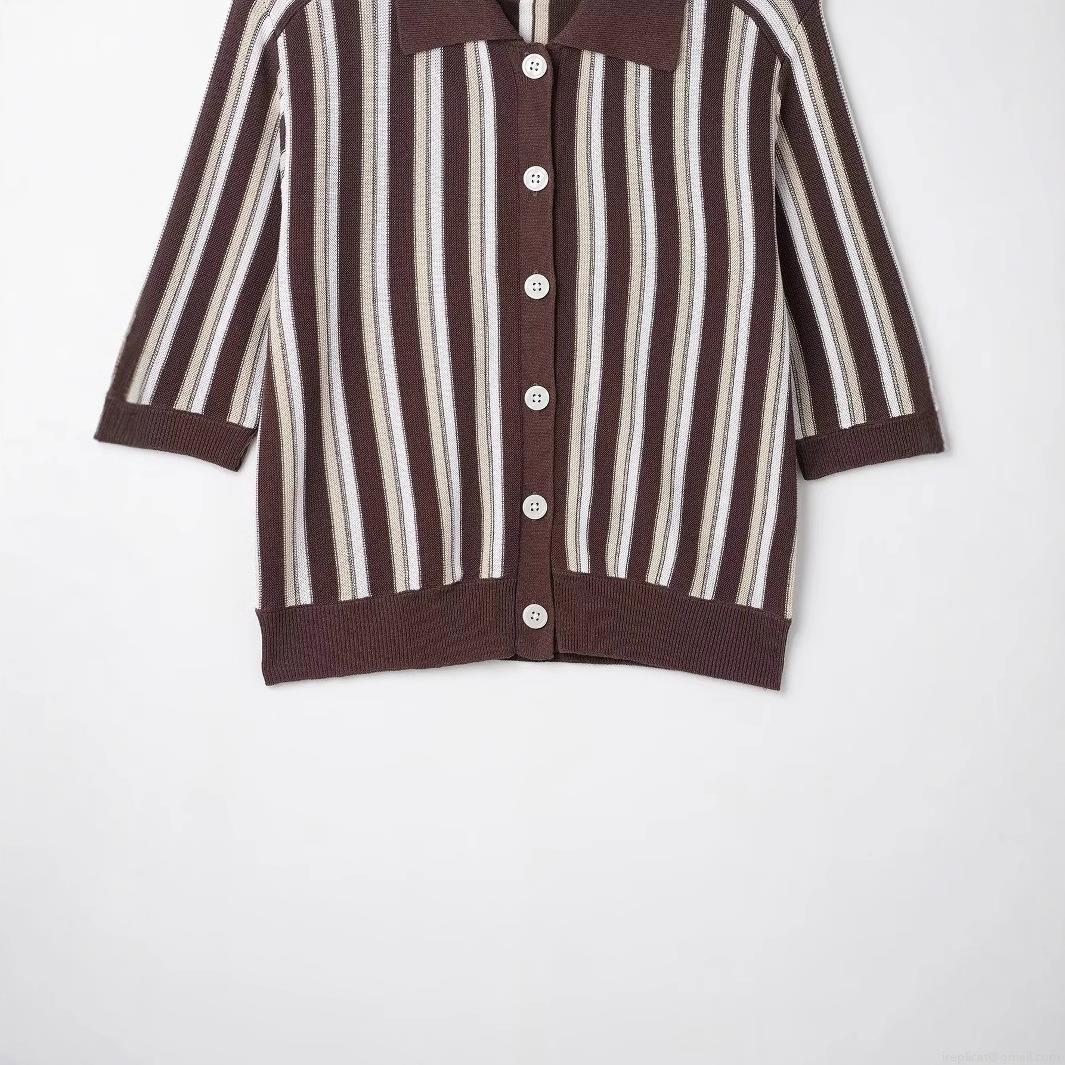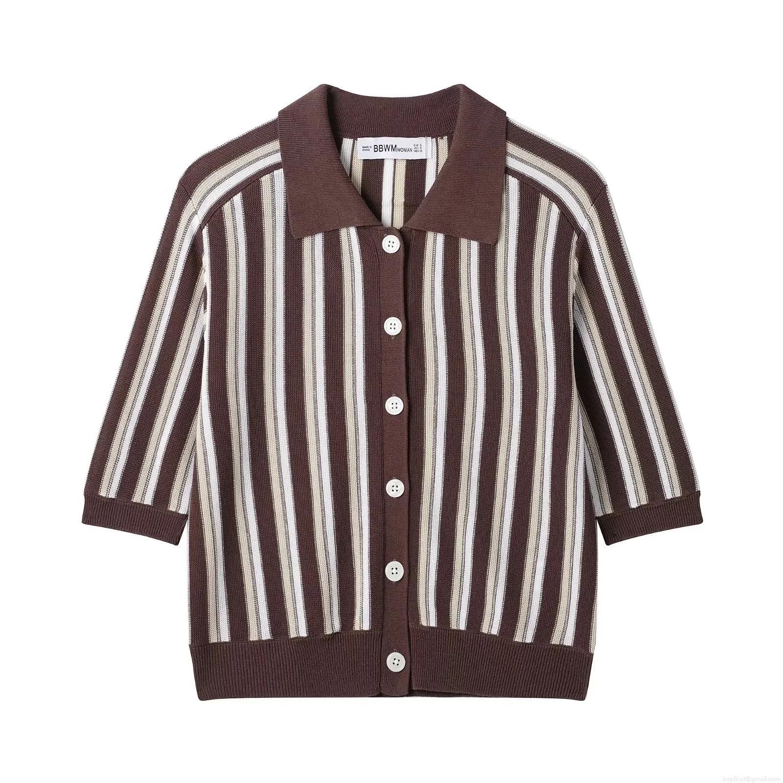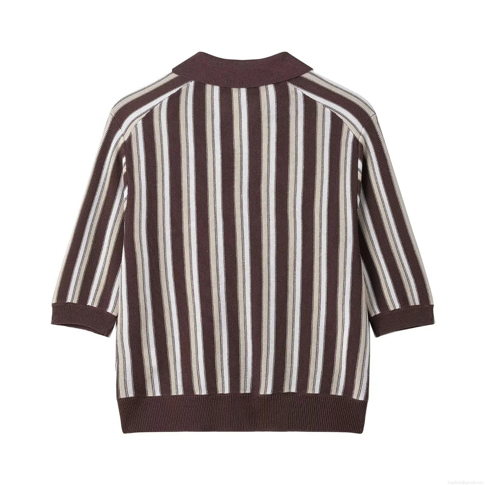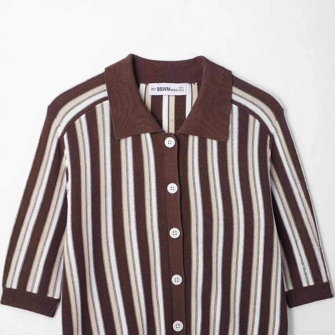 • Women's Vintage Striped Knit Polo Shirt Short Sleeve Button Down Cardigan Top Retro Casual Lapel Collar Polyester Knitwear For Women Daily Streetwear