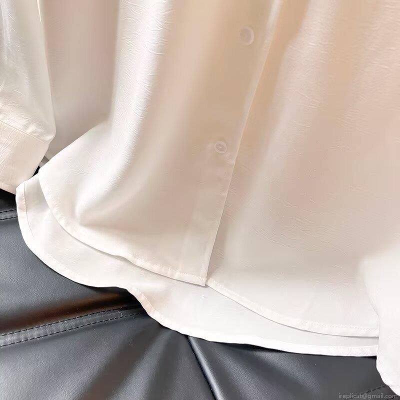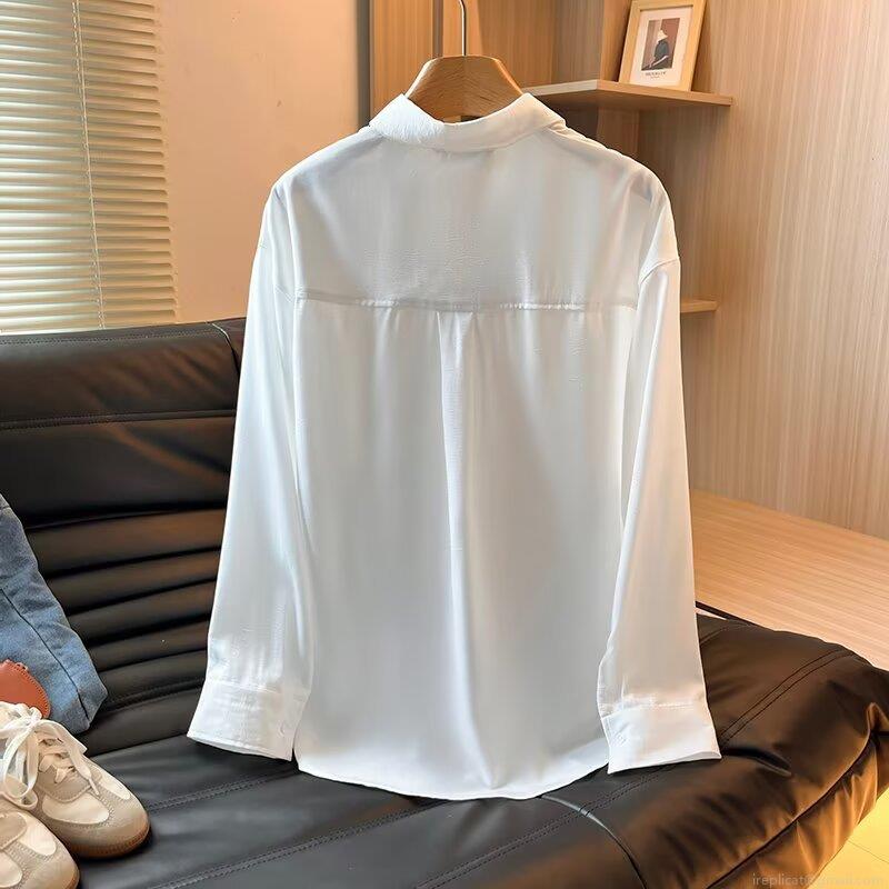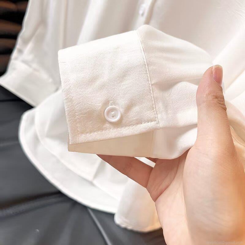 • Women's Viscose Spandex Solid Color Long Sleeve Lapel Shirt Loose Fit Casual Office Blouse With Pleated Texture For Autumn