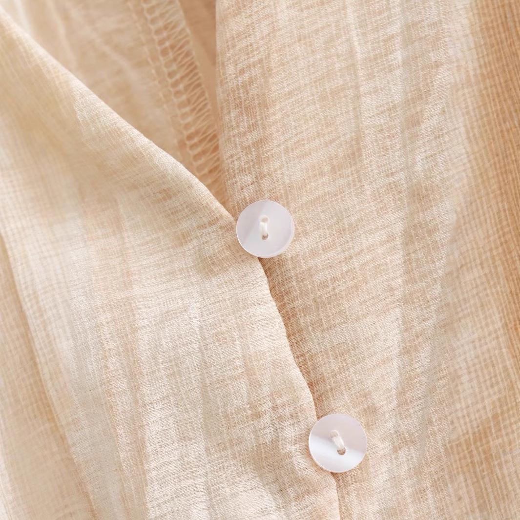 Solid Color, V-neck, Texture, Bell Sleeves, Vertical Fold Texture, Single Row With Multiple Deductions