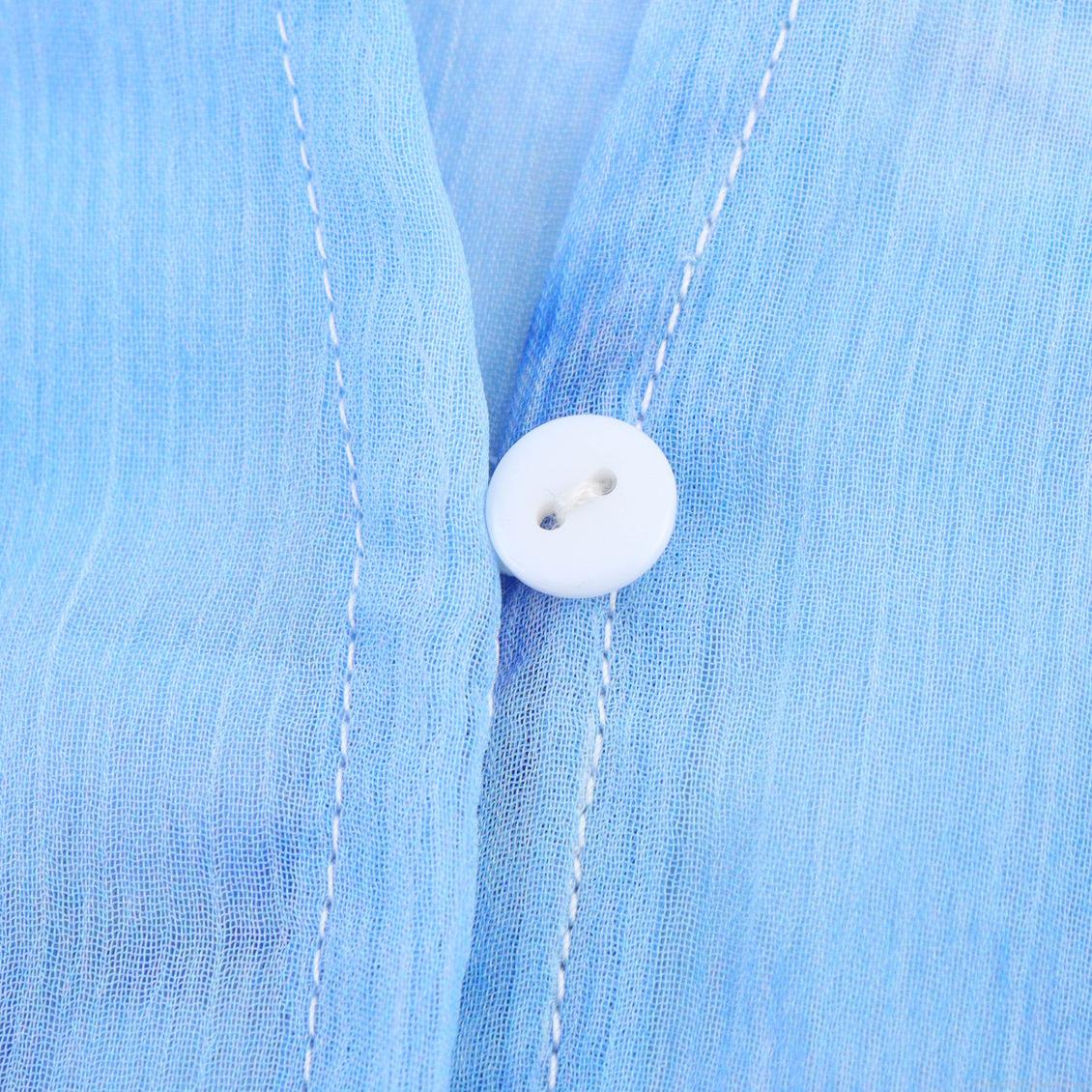 • Women's V-Neck Long Sleeve Floral Print Chiffon Blouse With White Lace Trim Loose Casual Holiday Top Polyester Shirt Blue