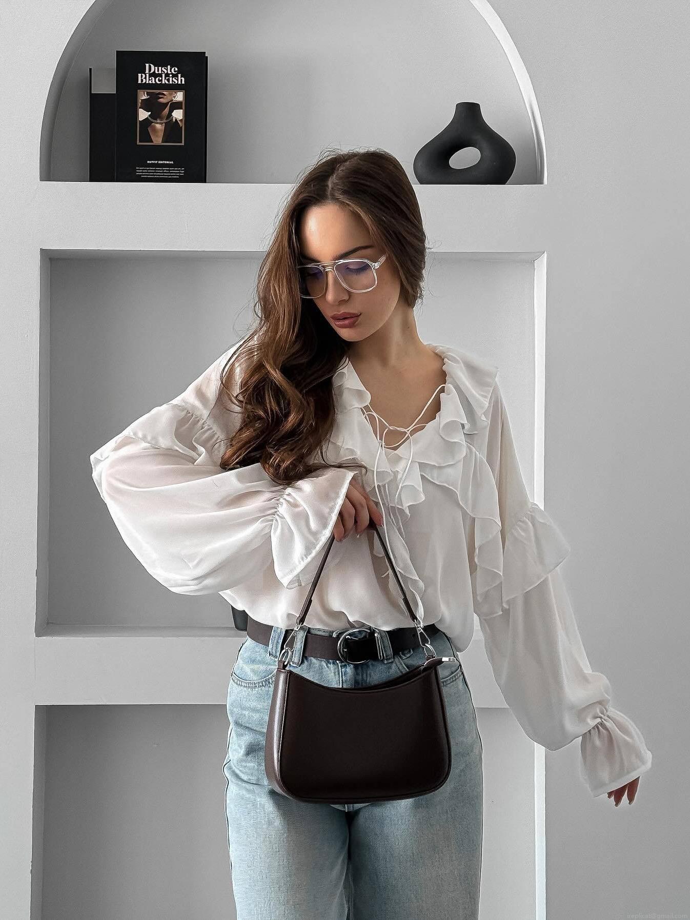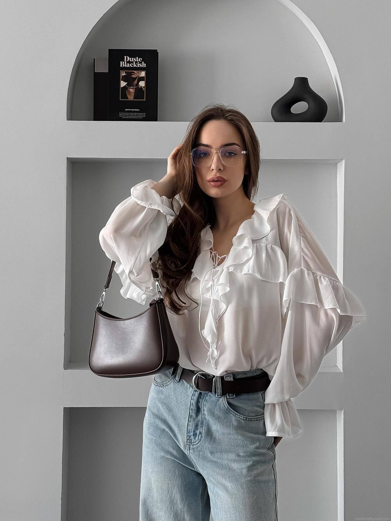 • Women's V-Neck Ruffle Blouse Cotton Polyester Tie-Up Flare Sleeve Top Niche Chic Elegant Long Sleeve Shirt For Daily Commute Women Romantic Style Clothing