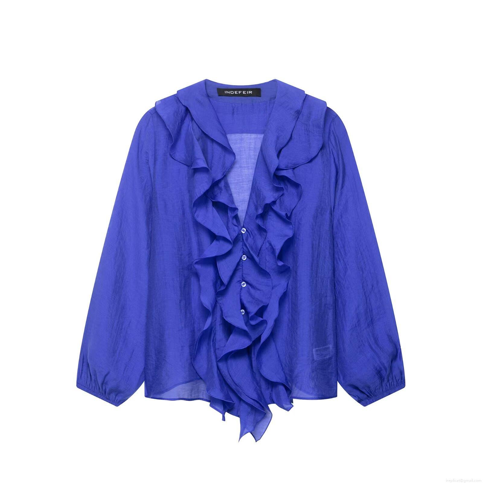 • Women's V-Neck Ruffle Long Sleeve Chiffon Blouse Solid Color Casual Button Down Shirt Elegant Streetwear Tops For Daily Dating