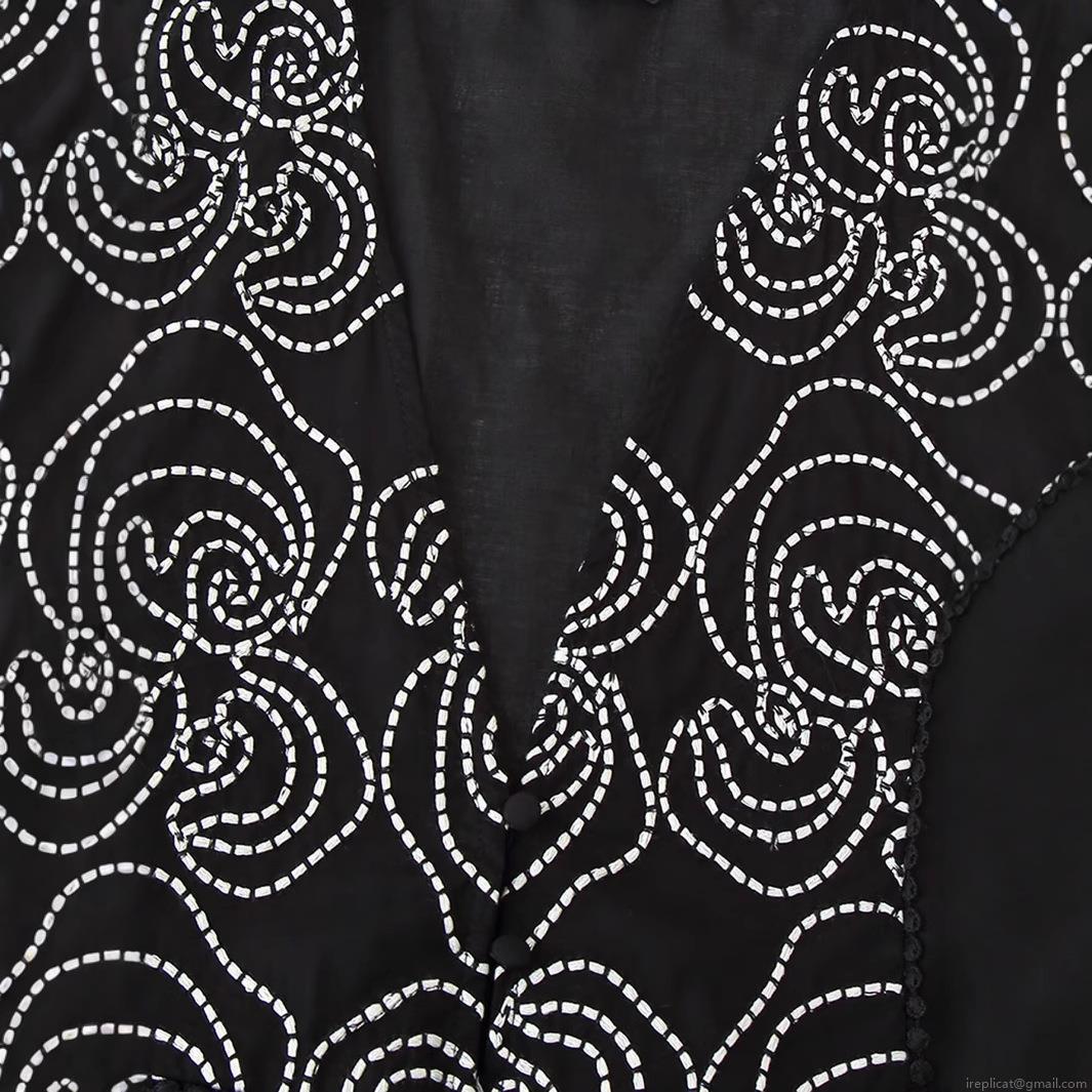 Solid Color, Embroidery, Ruffles, V-neck, Single-breasted