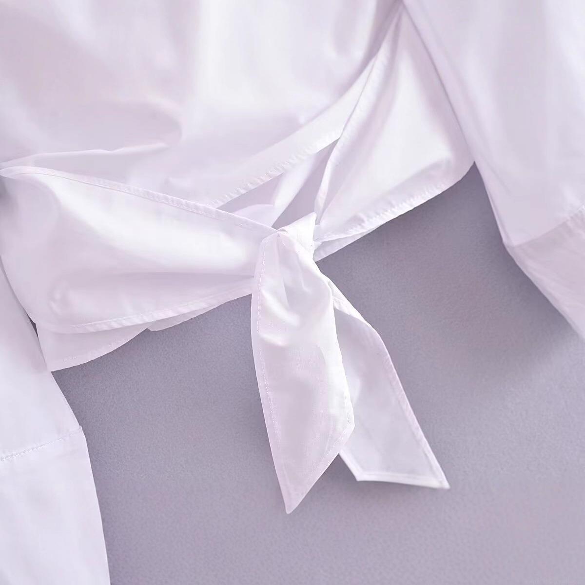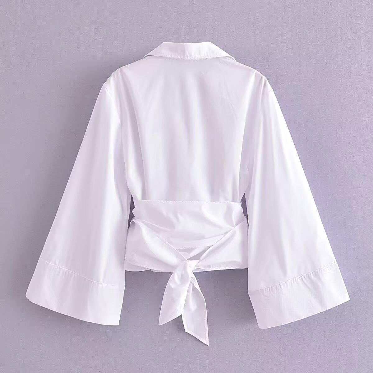 • Women's White Cropped Shirt Wrap Tie-Front Long Flare Sleeve Blouse 100% Polyester Turn-Down Collar Streetwear Autumn Fall Tops For Women Daily Wear