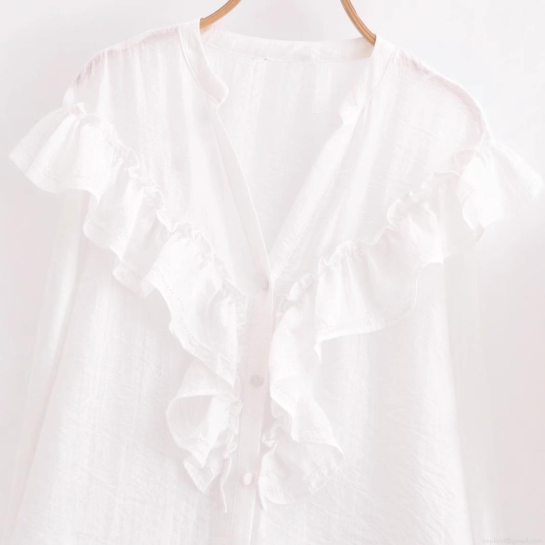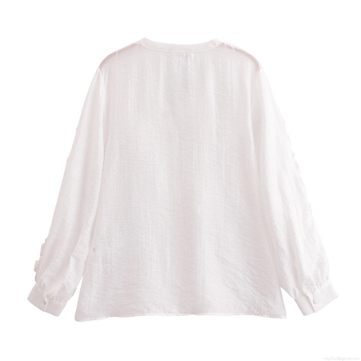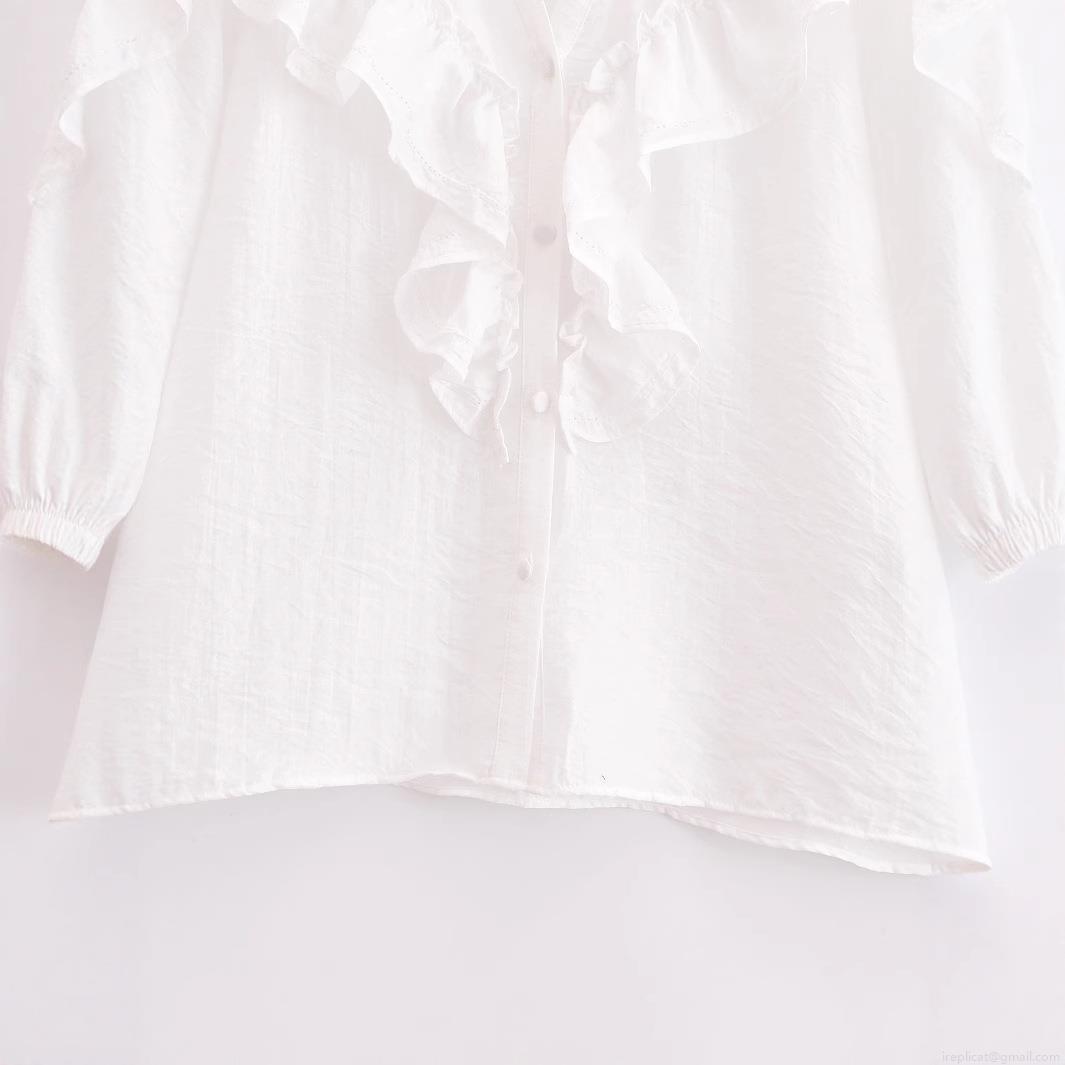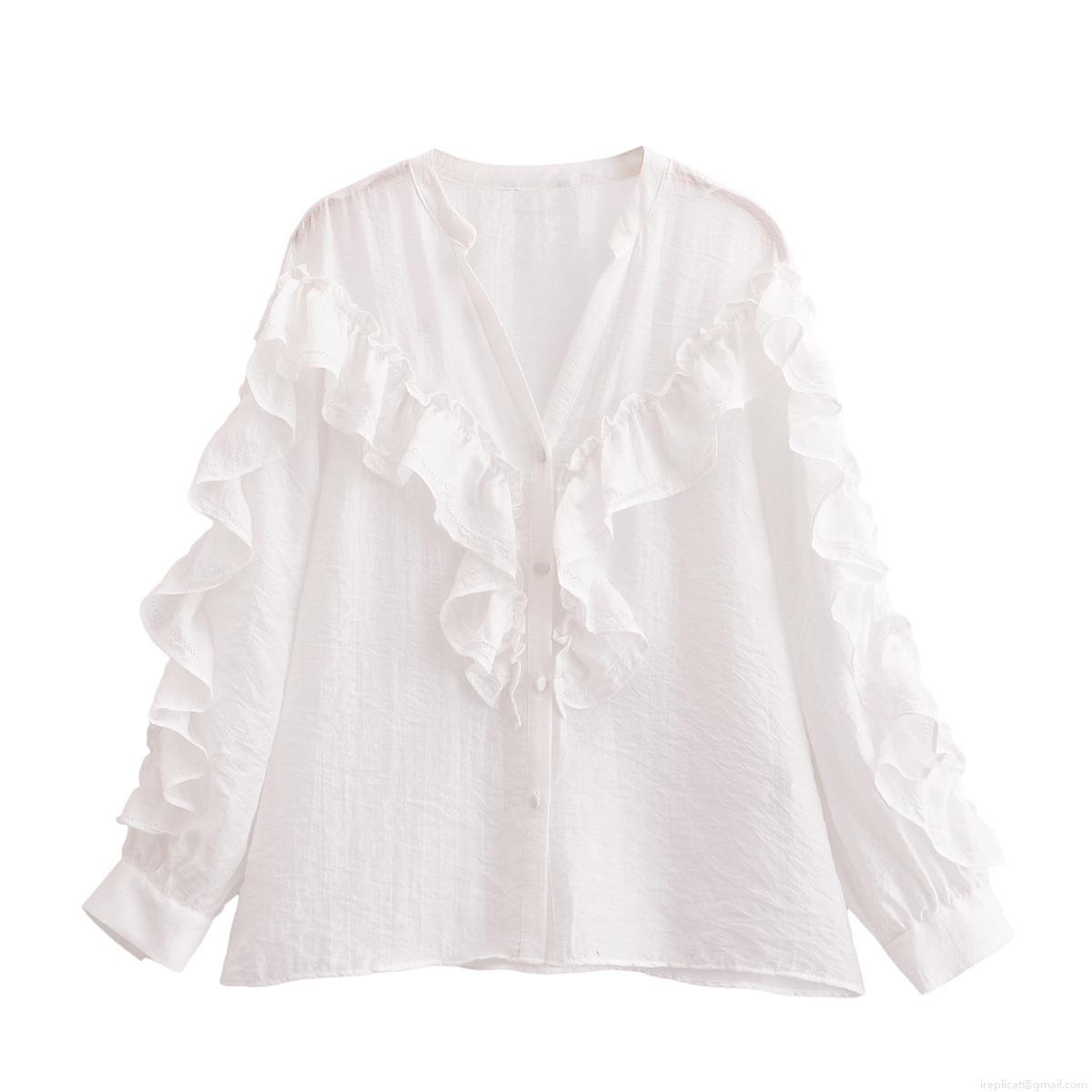 • Women's White Ruffle Long Sleeve Blouse V-Neck Layered Decorative Shirt Solid Color Polyester Top for Casual Daily Date Wear Office Lady Fashion Sweet Style Shirt