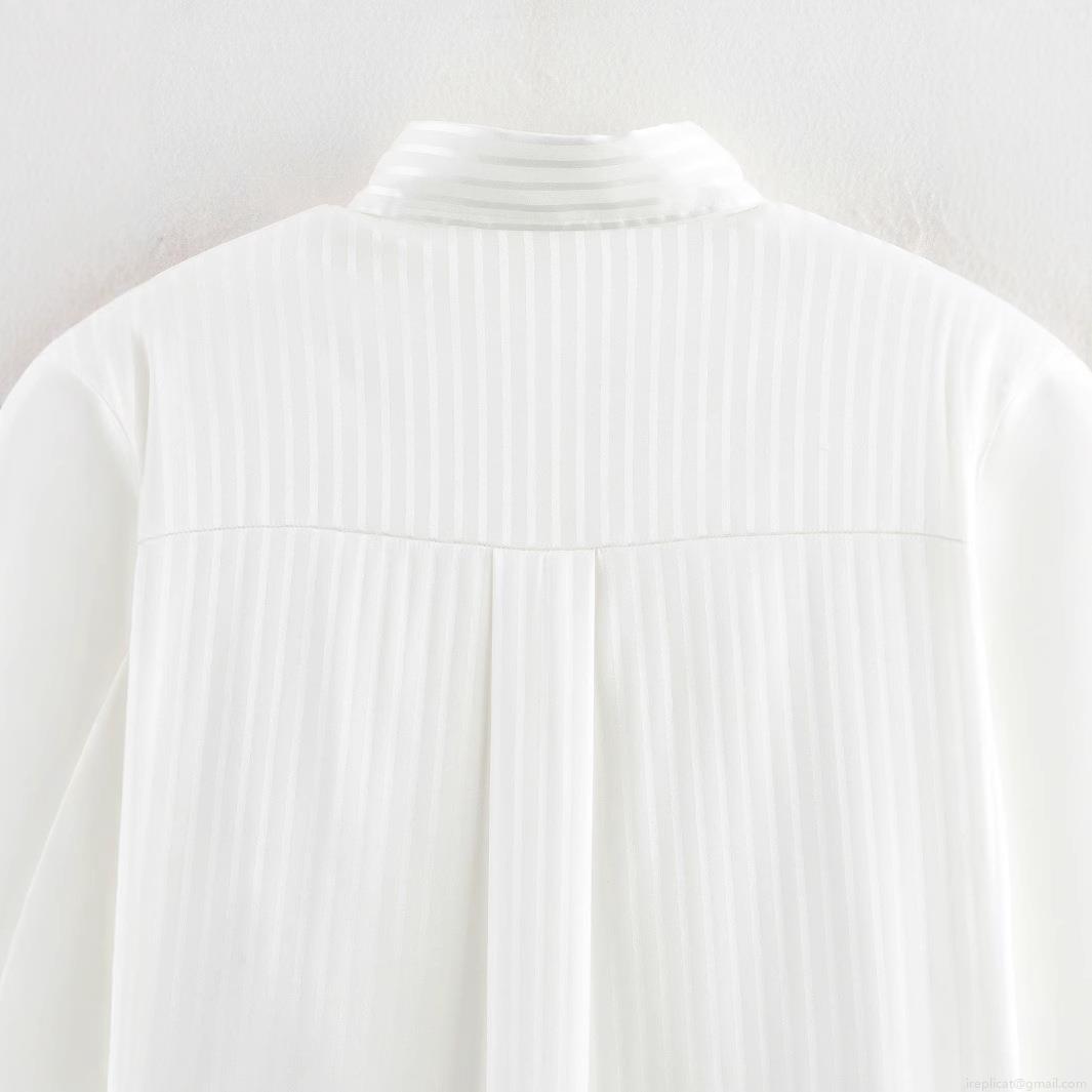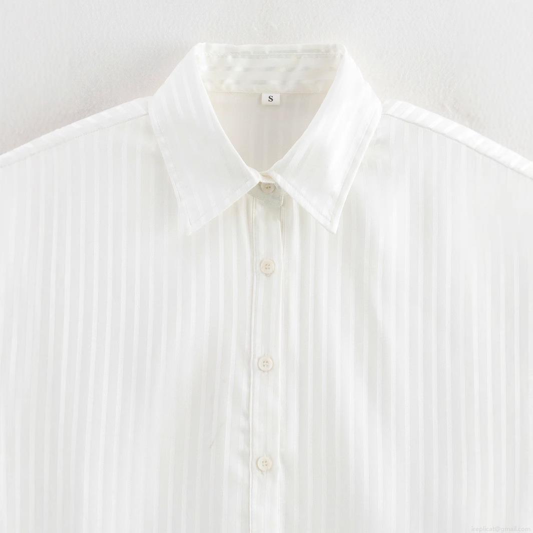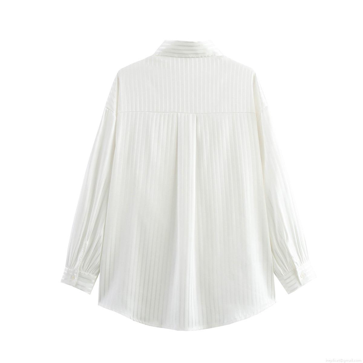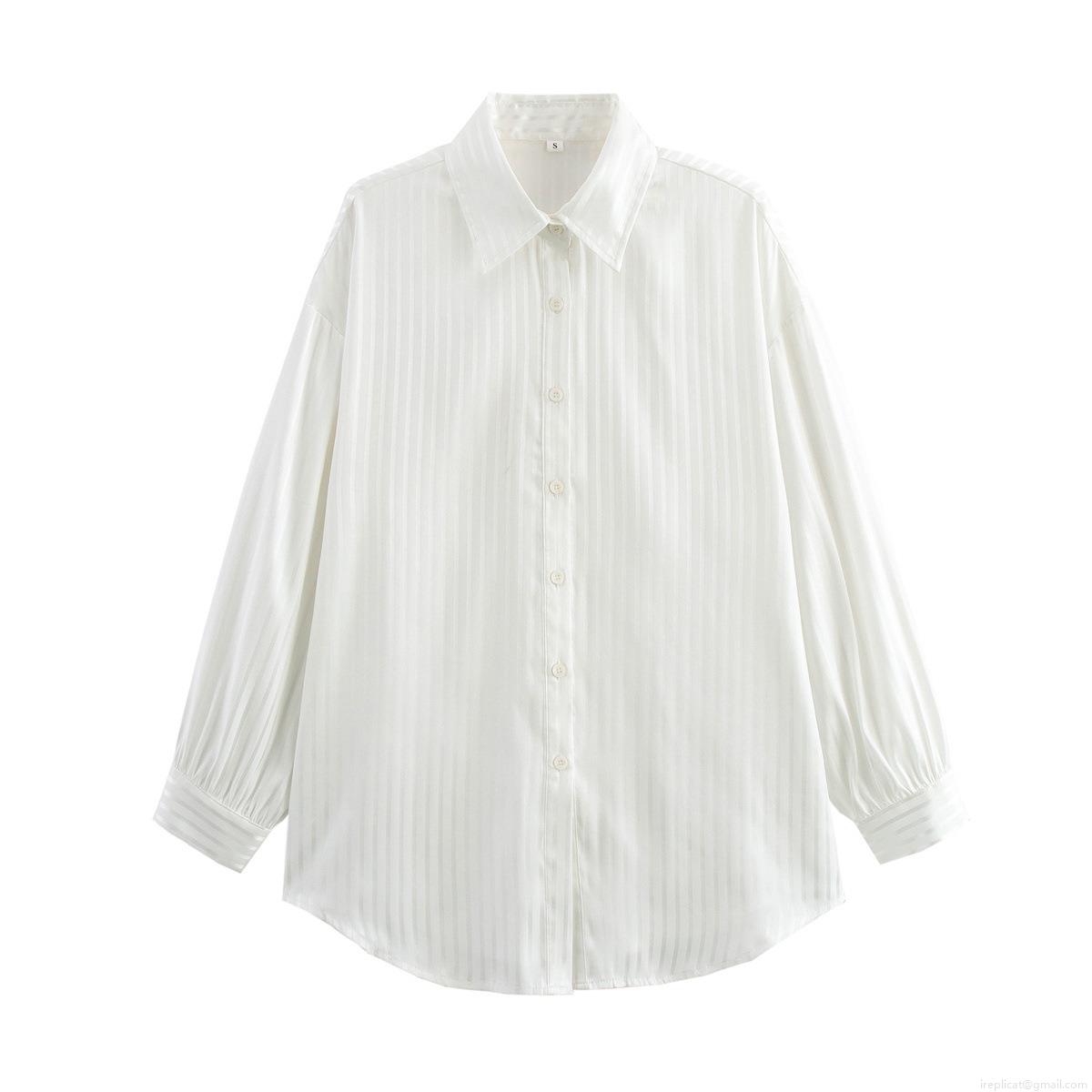 • Women's White Vertical Striped Long Sleeve Shirt Lightweight Polyester Lapel Loose Button Up Blouse For Summer Casual Streetwear Daily Commuting
