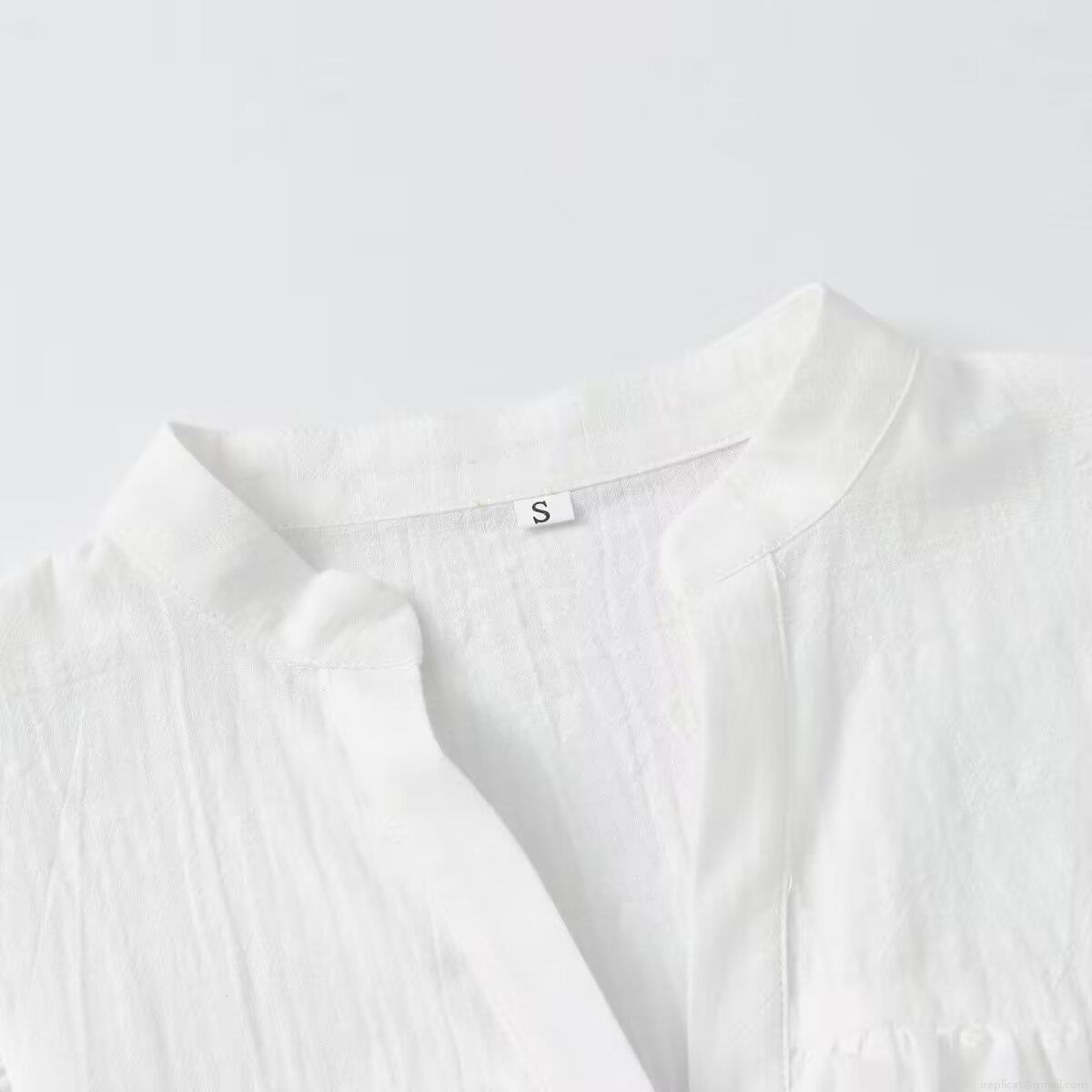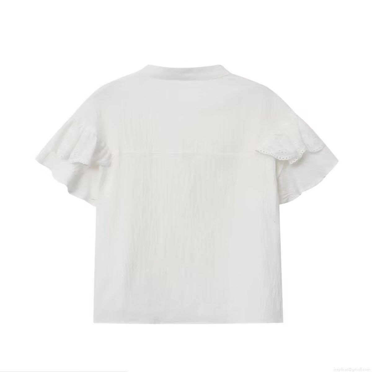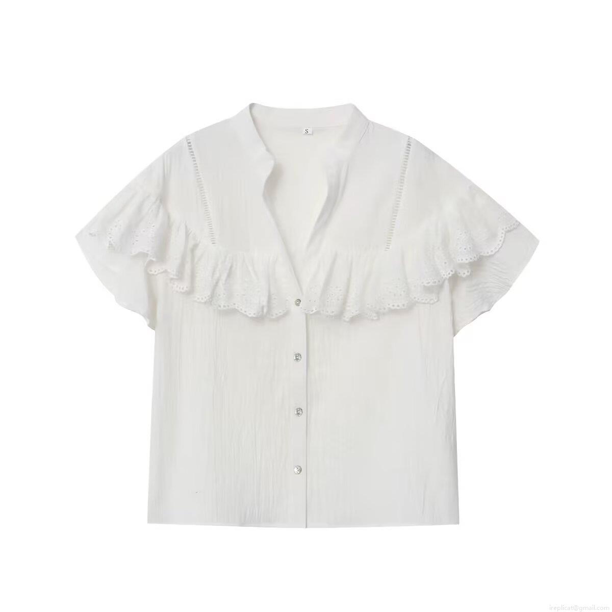 Women's White V-Neck Ruffle Patchwork Shirt Elegant Short Sleeve Single Breasted Blouse For Summer Casual Streetwear Office Lady Tops