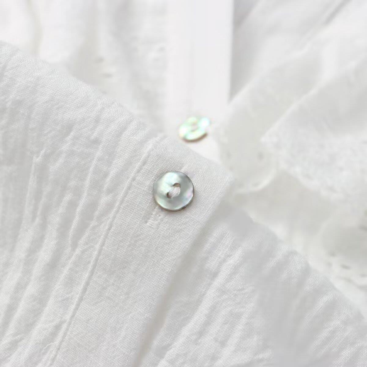 Solid Color, Splice, Ruffles, V-neck, Single-breasted, Openwork Embroidery