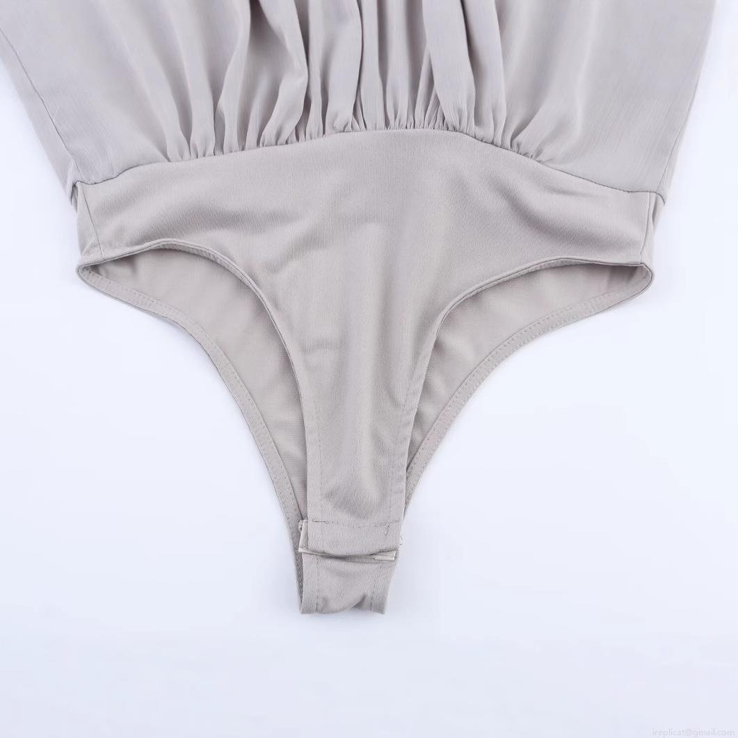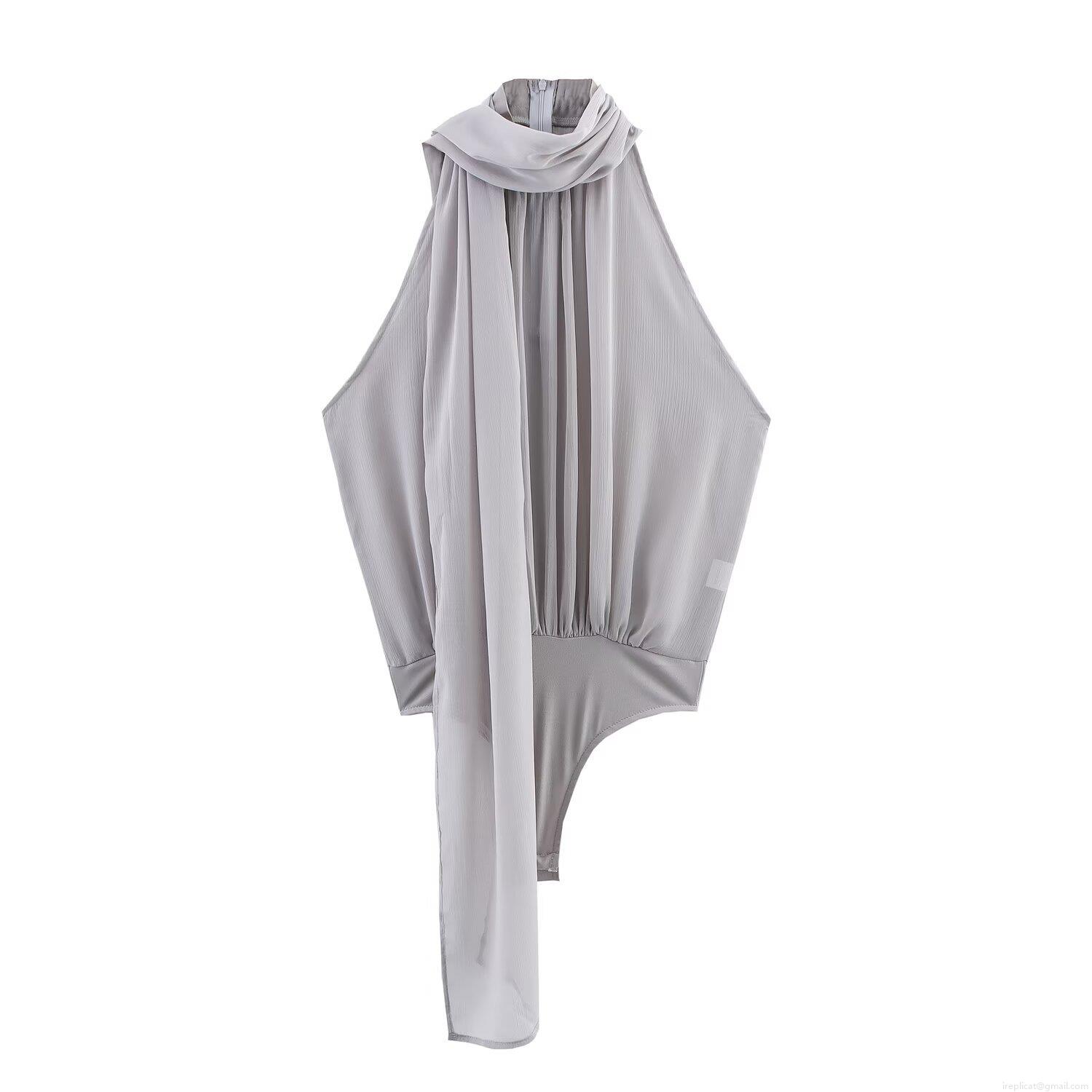 Elegant Women's Bodysuit With Bow Decoration Halter Neck Tulle Fabric Sleeveless Backless Jumpsuit For Party Evening Club Sexy Chic Bodysuit Silver Grey