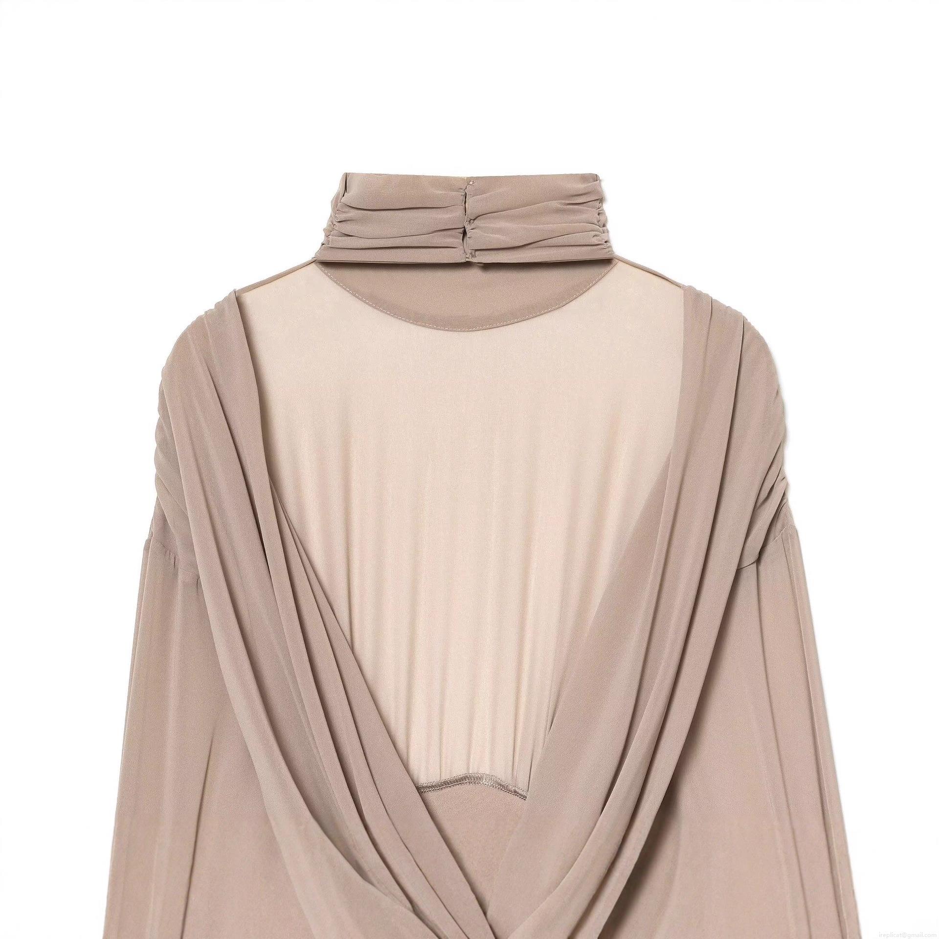 Solid Color, Splice, Pleats, Backless, Perspective, Puff Sleeves