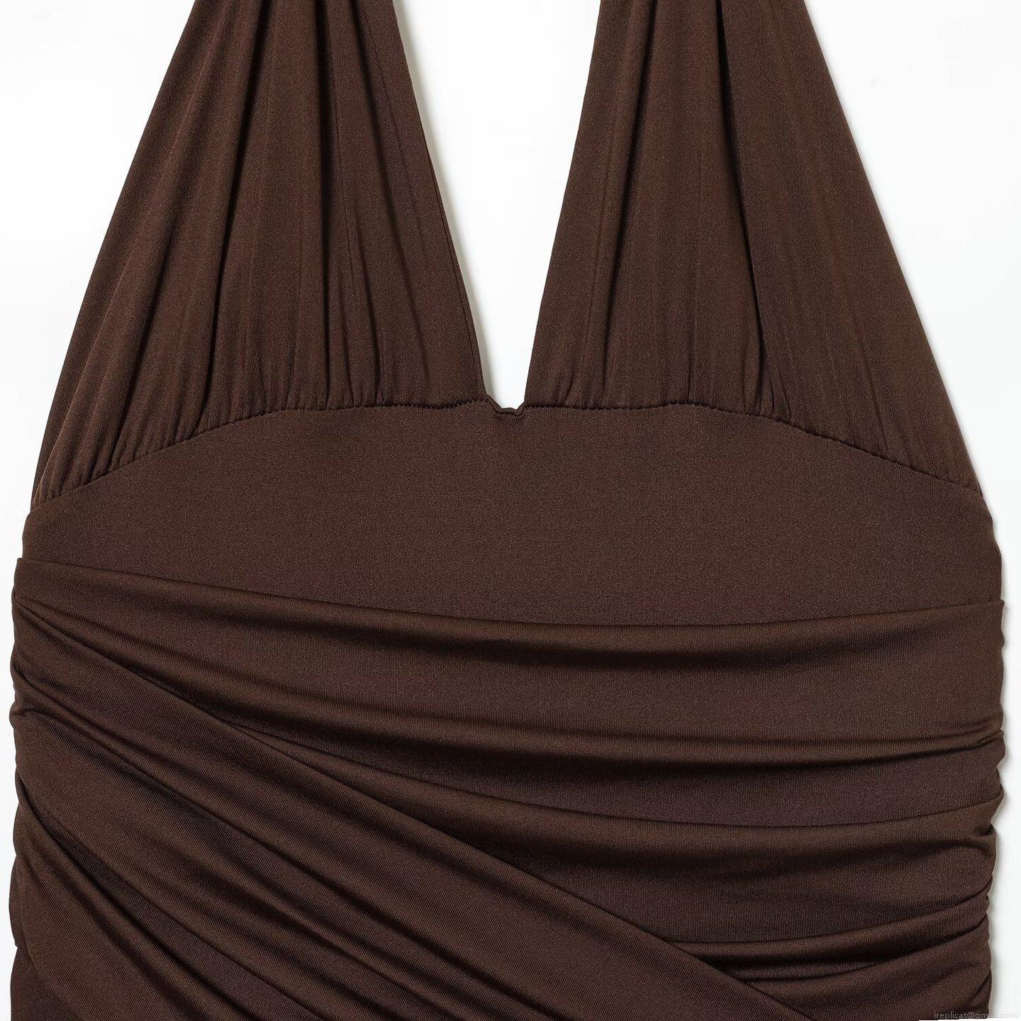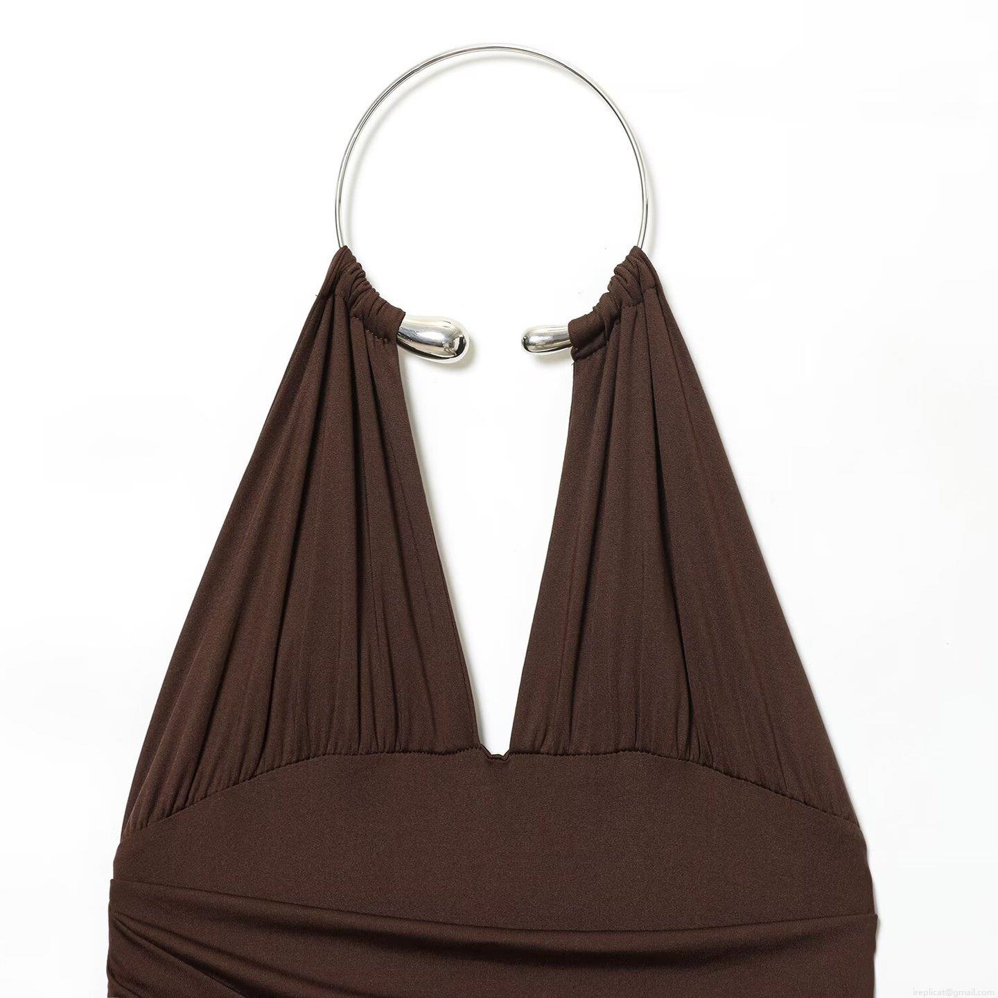 Solid Color, Pleats, Neckband, Backless, Metal Ring