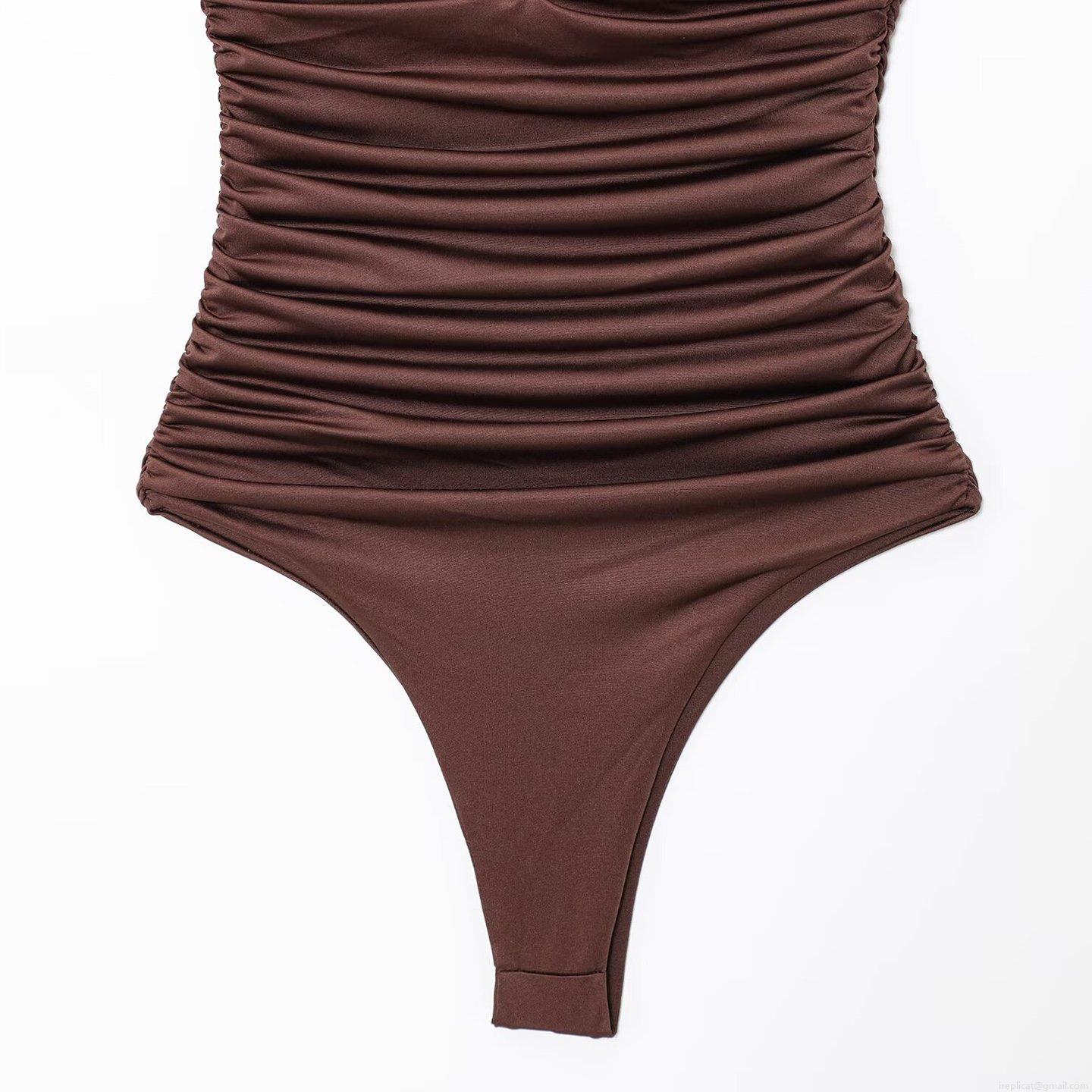 • Sexy Women Ruched Off-Shoulder Bodysuit Sleeveless High Elastic Polyester Spandex Slim Fit Summer Party Clubwear Jumpsuit Top