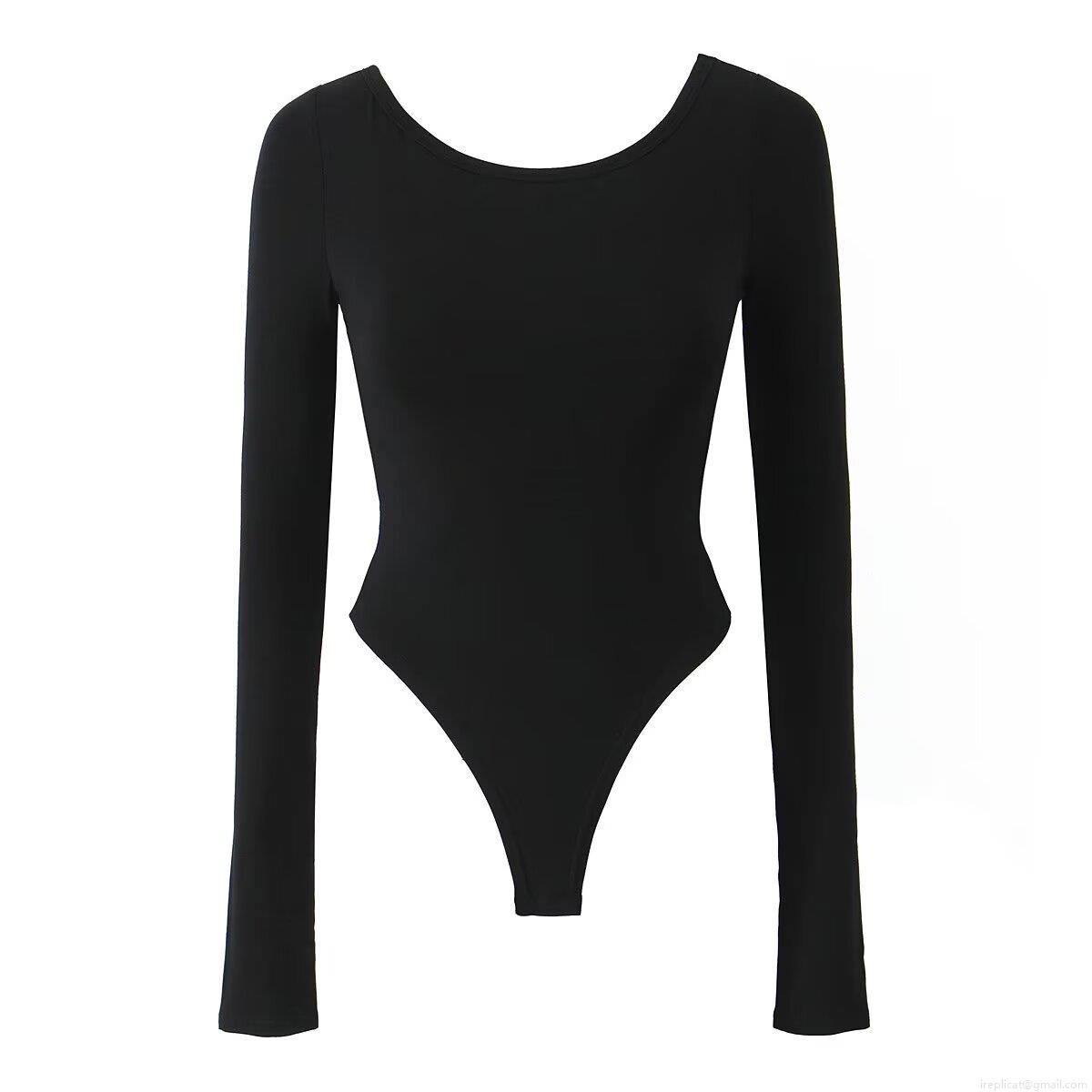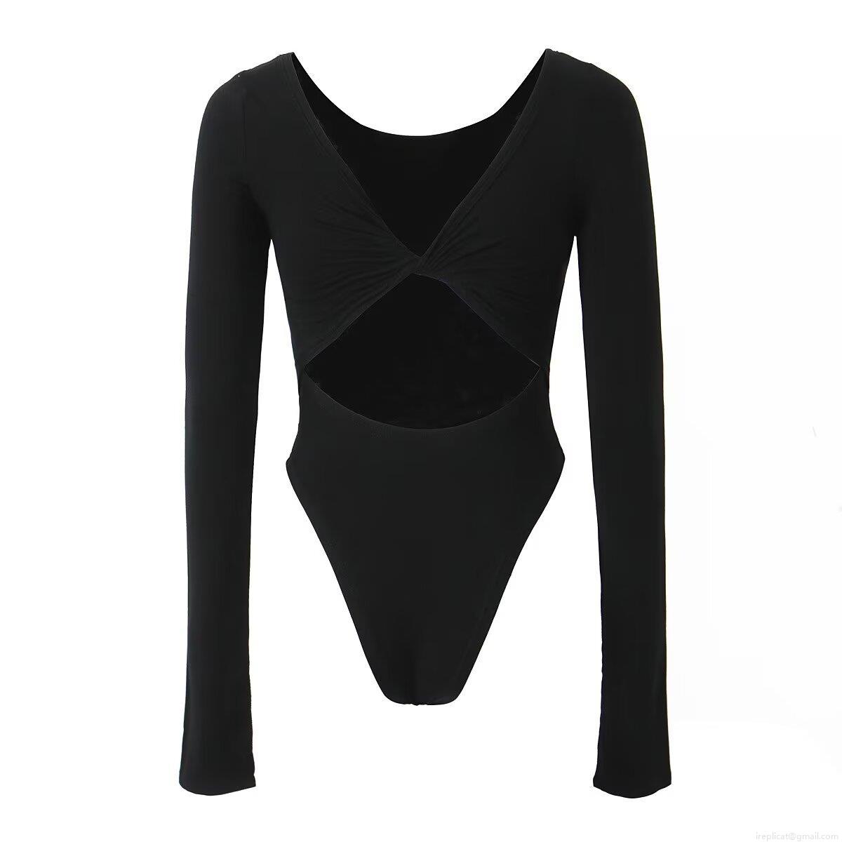 • Sexy Women's Round Neck Cross Backless Bodysuit Long Sleeve Slim Fit Cut Out One-Piece Leotard Top Rayon Spandex Solid Color Bodysuit For Party Streetwear Clubwear