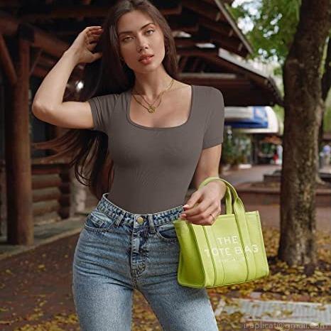 • Women Sexy Ribbed Knit Bodysuit Square Neck Short Sleeve Skinny Jumpsuit For Yoga Sport Casual Stretchy Ribbed Bodysuit Solid Color Summer Tops