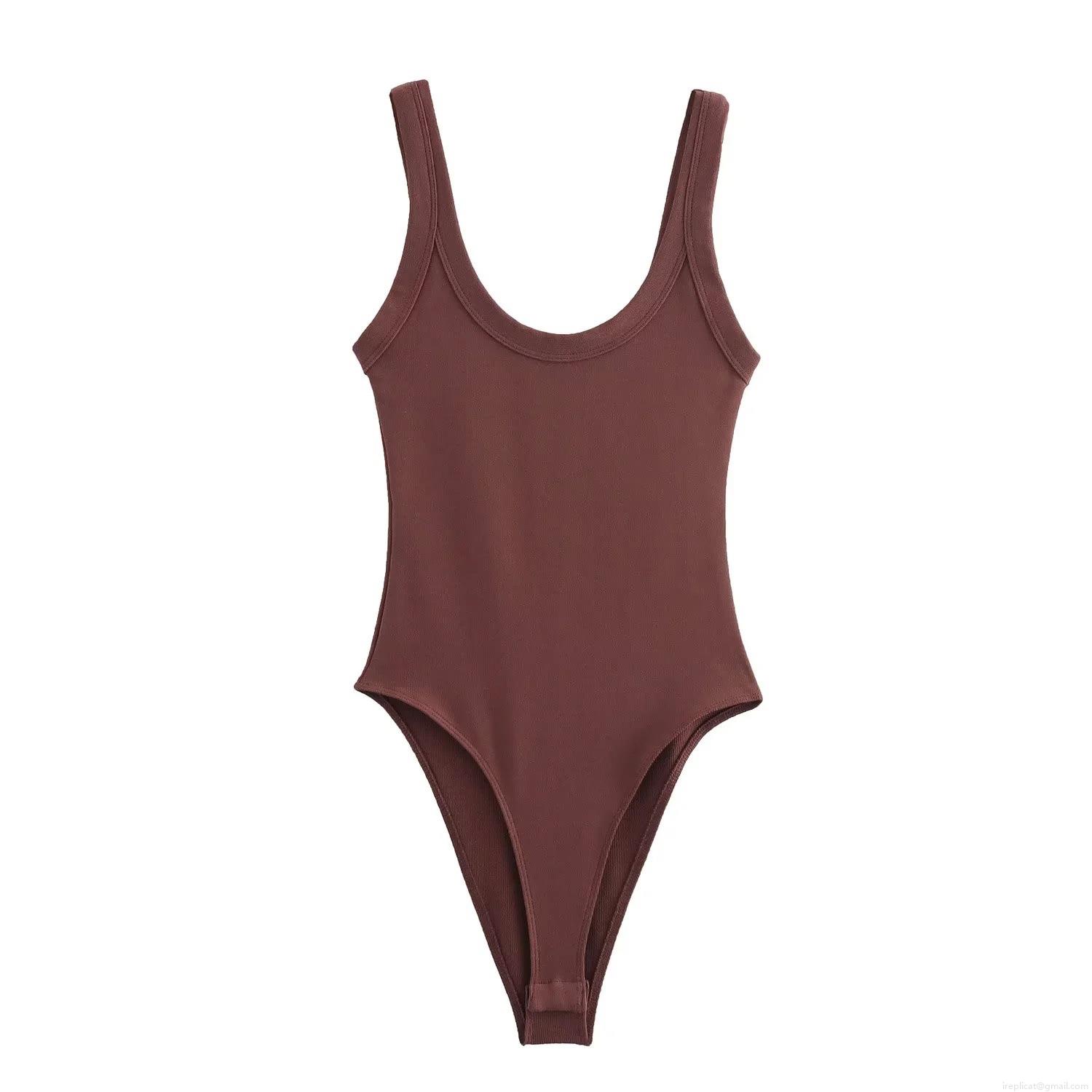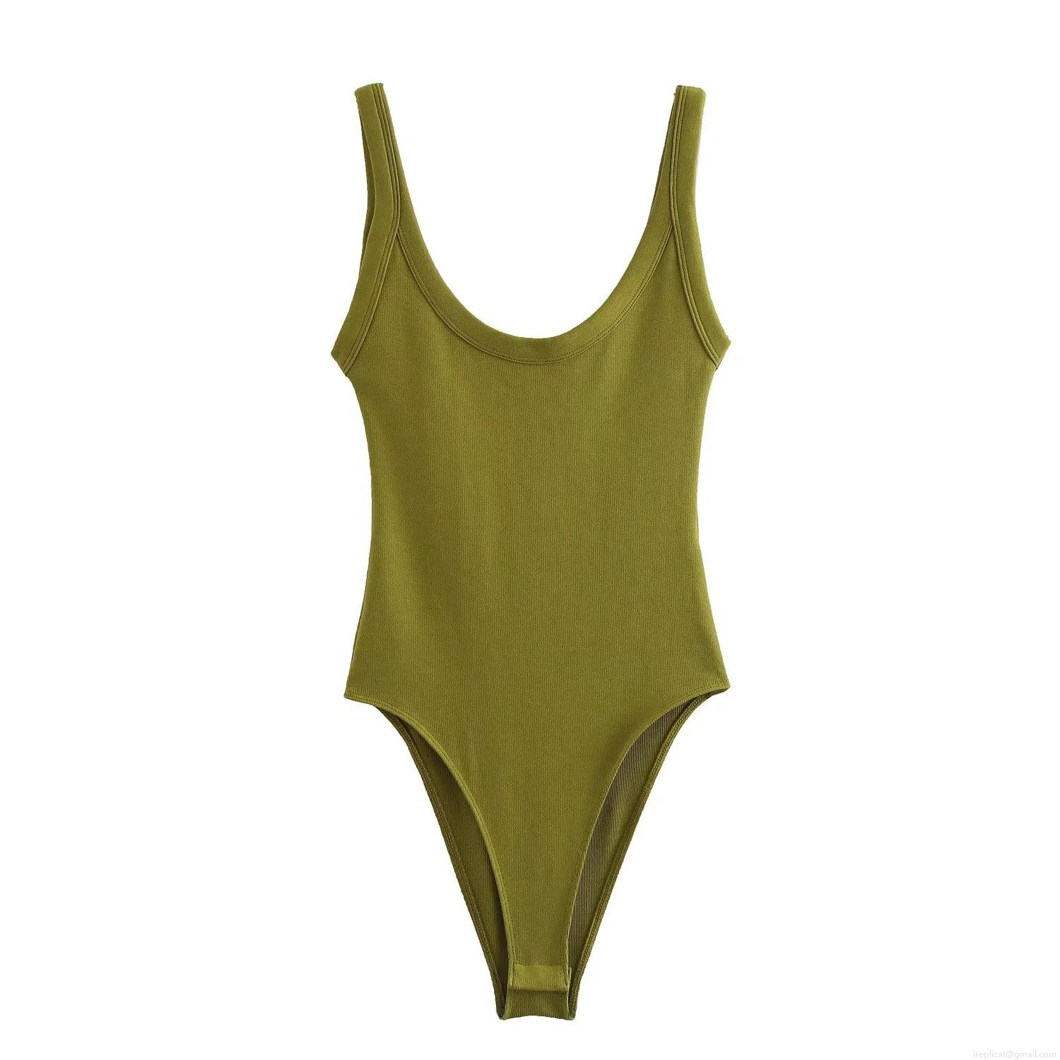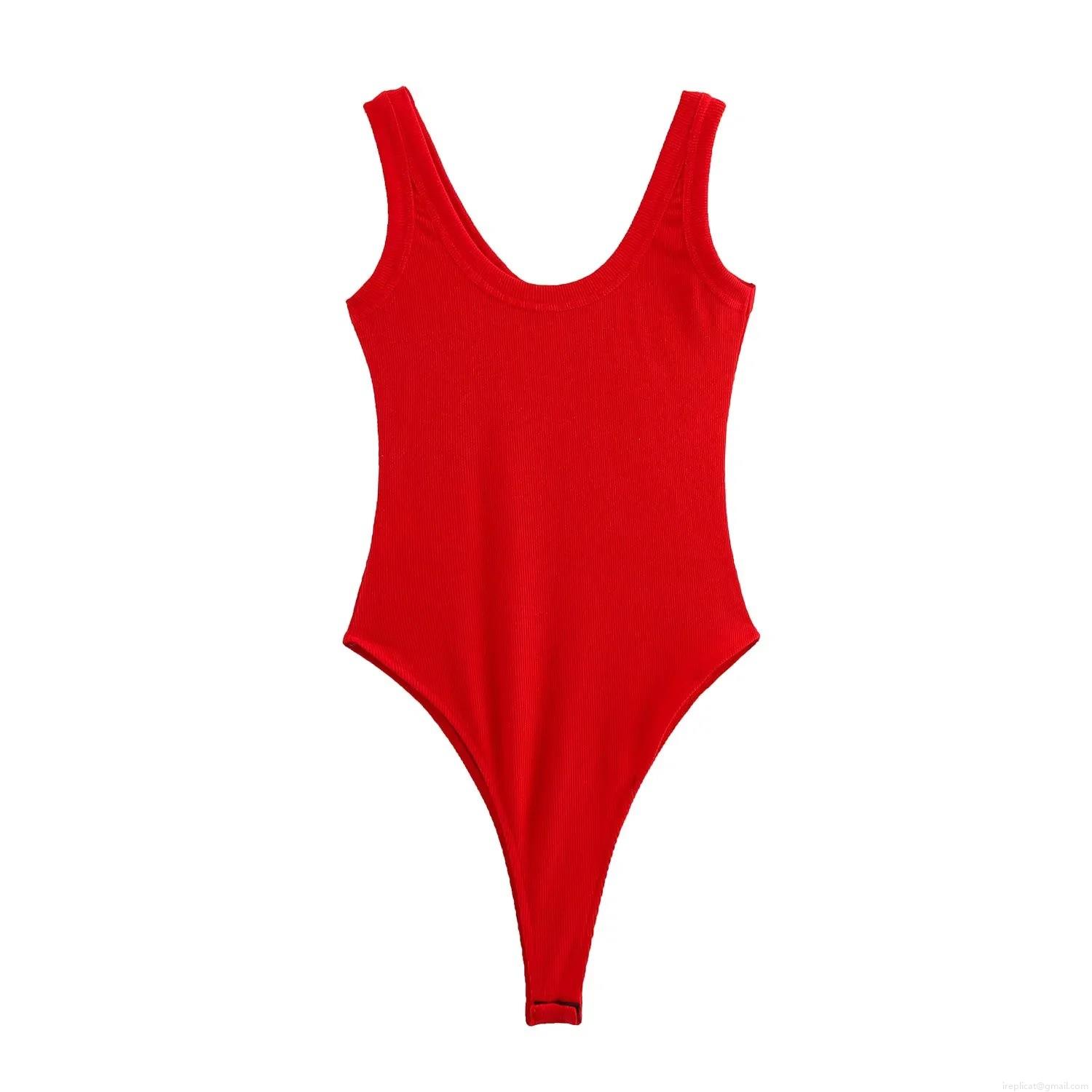 • Women Sexy Sleeveless Ribbed Bodysuit U-Neck Slim Fit Solid Color Jumpsuit For Daily Party Spice Girl Style Polyester Knit Innerwear