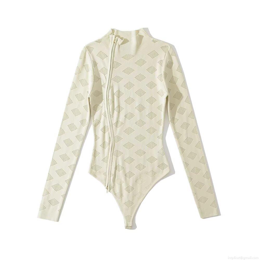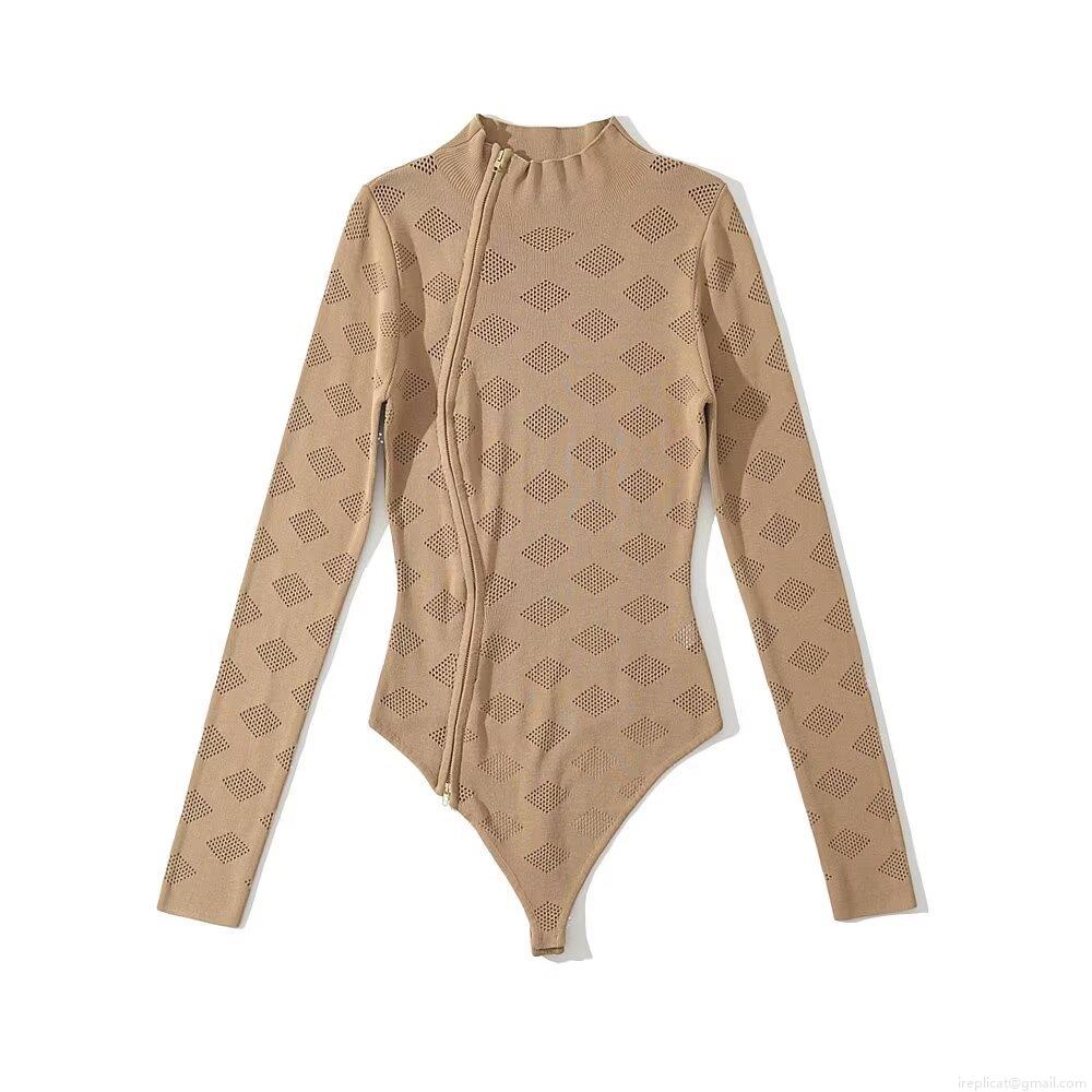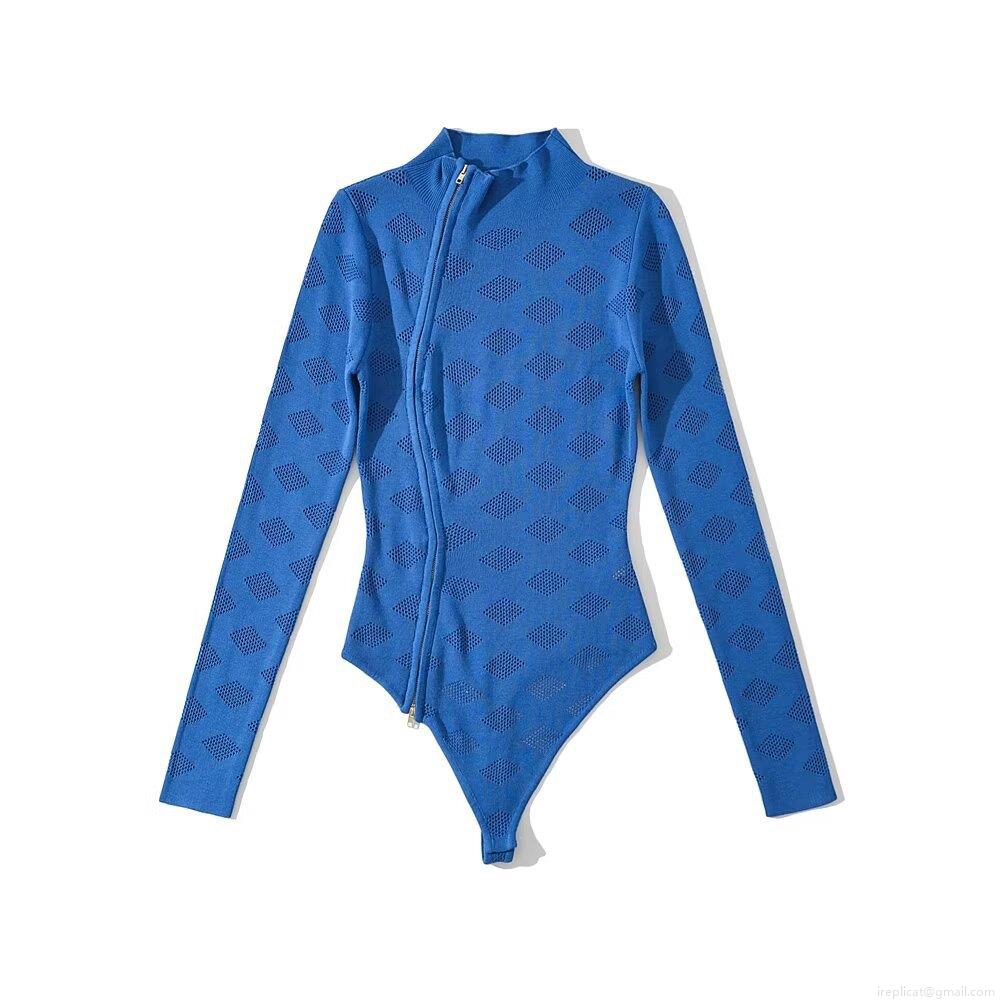 • Women's Long Sleeve Bodysuit Knit Rayon Nylon Hollow Out Diamond Pattern Diagonal Double Zipper Stand Collar Slim Fit Jumpsuit Streetwear Tops