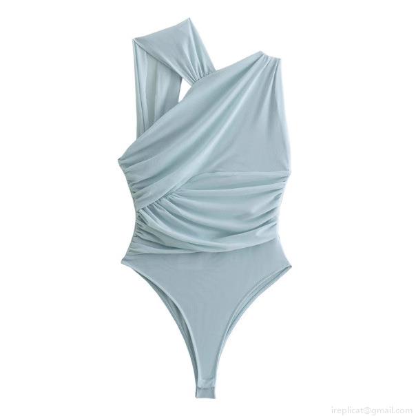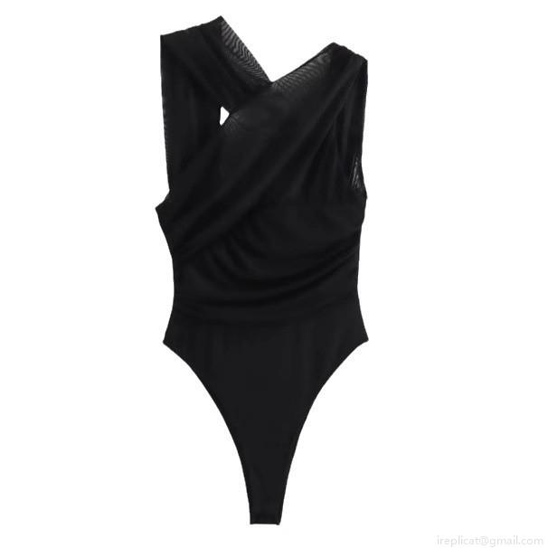 • Women's Sexy Asymmetrical Ruched Mesh Bodysuit One Shoulder Cross Knitted Bodysuit Tops For Party Club Night Out Elegant Slim Fit Jumpsuits