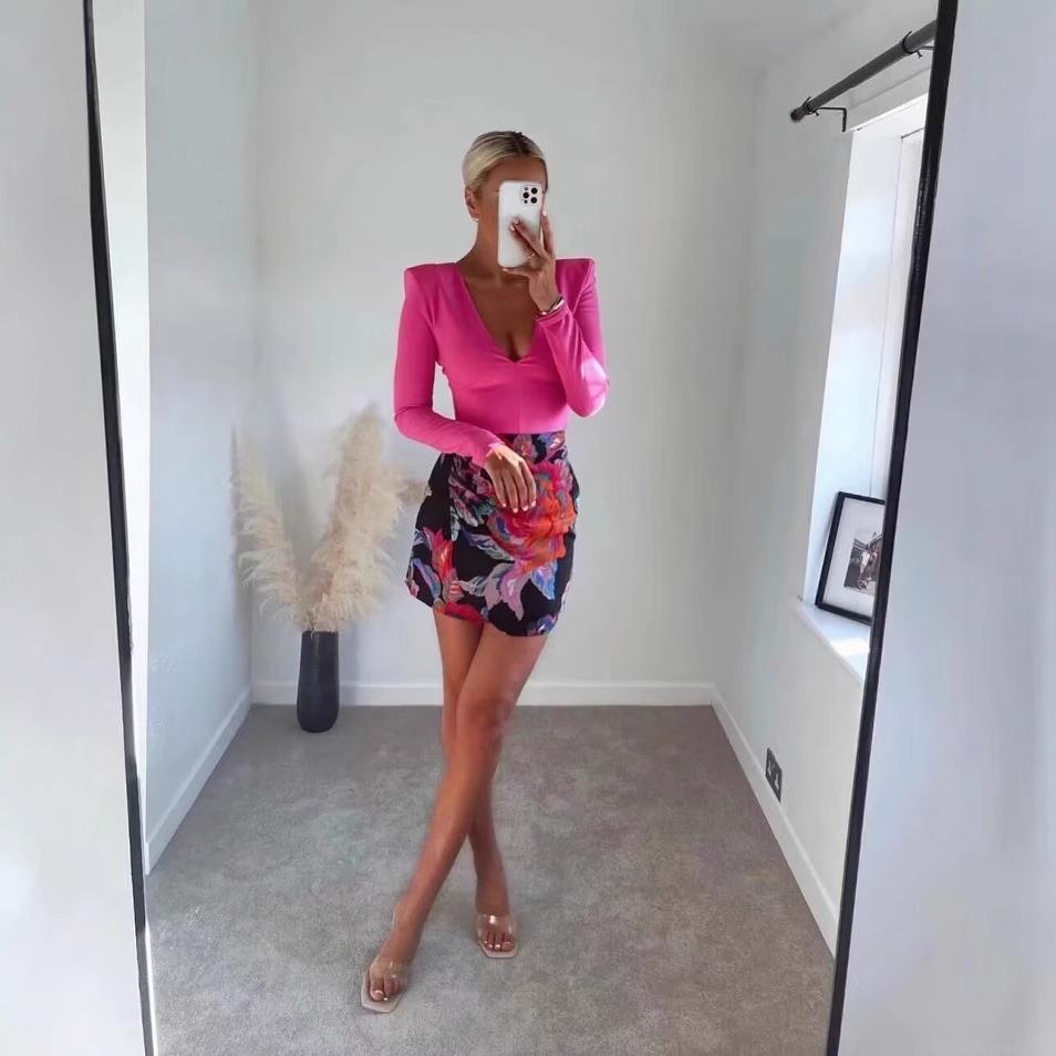 Solid Color, Deep V-neck, Concealed Zipper On The Back, Shoulder Pad Design