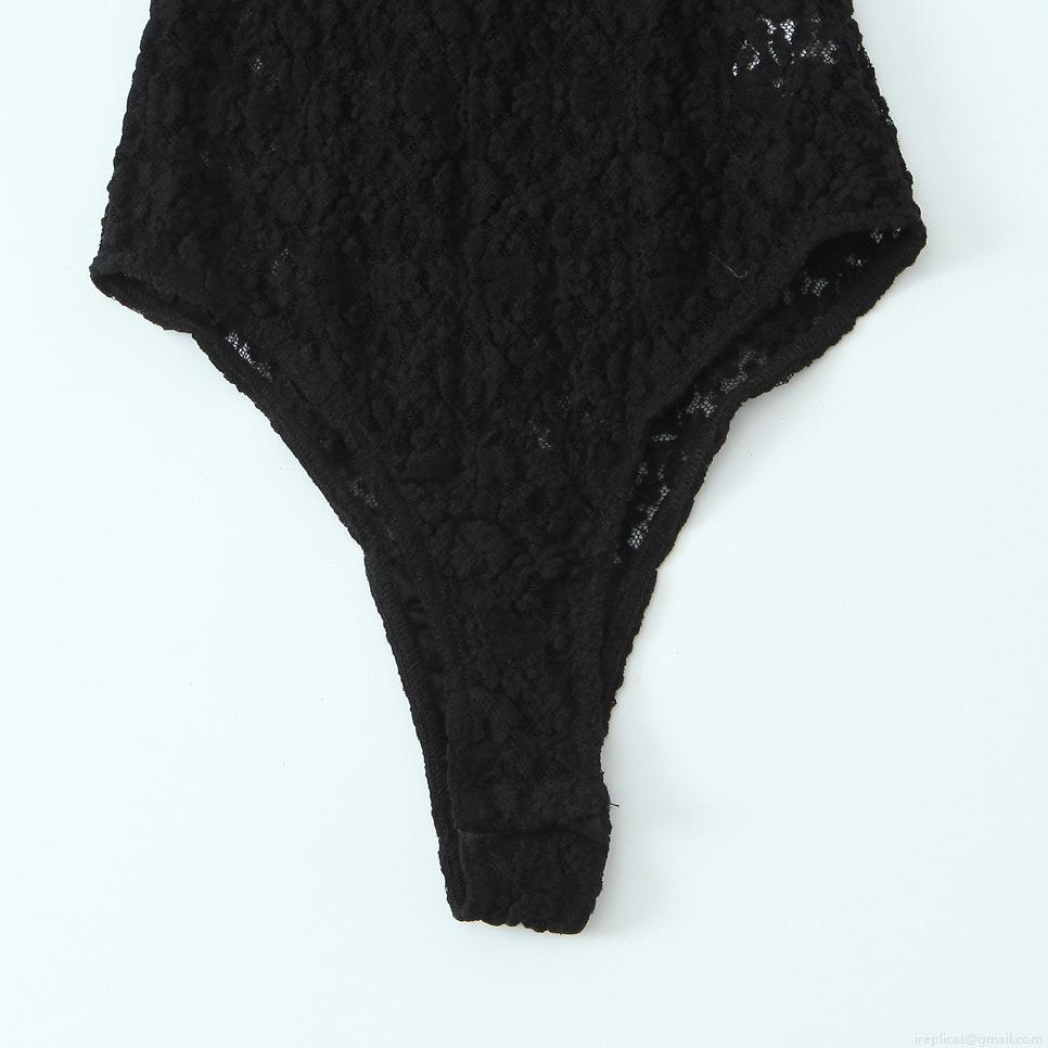 • Women's Sexy Lace Bodysuit Long Sleeve High Neck Mesh Jumpsuit With Back Satin Bow Elegant Party Clubwear Bodycon Leotard Top