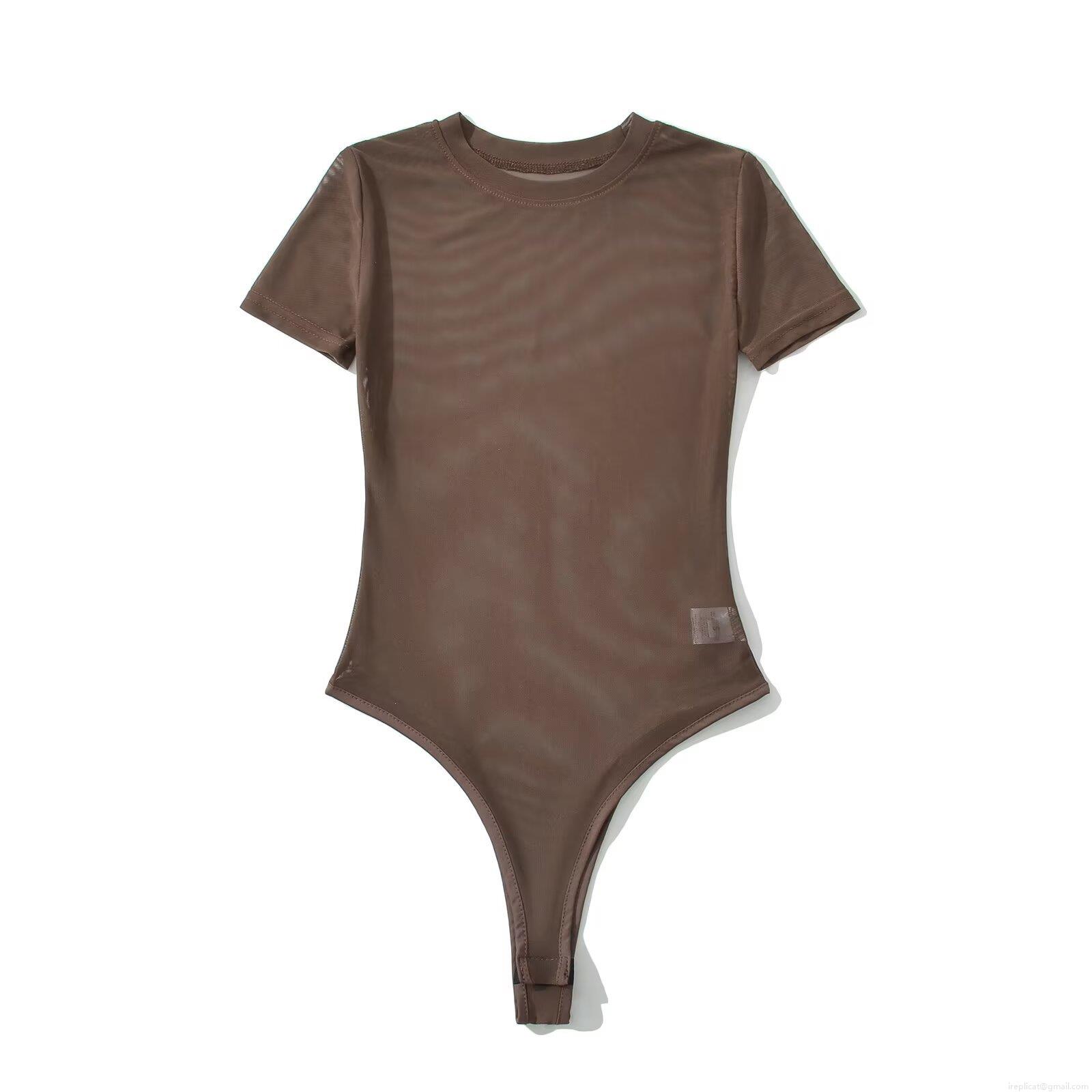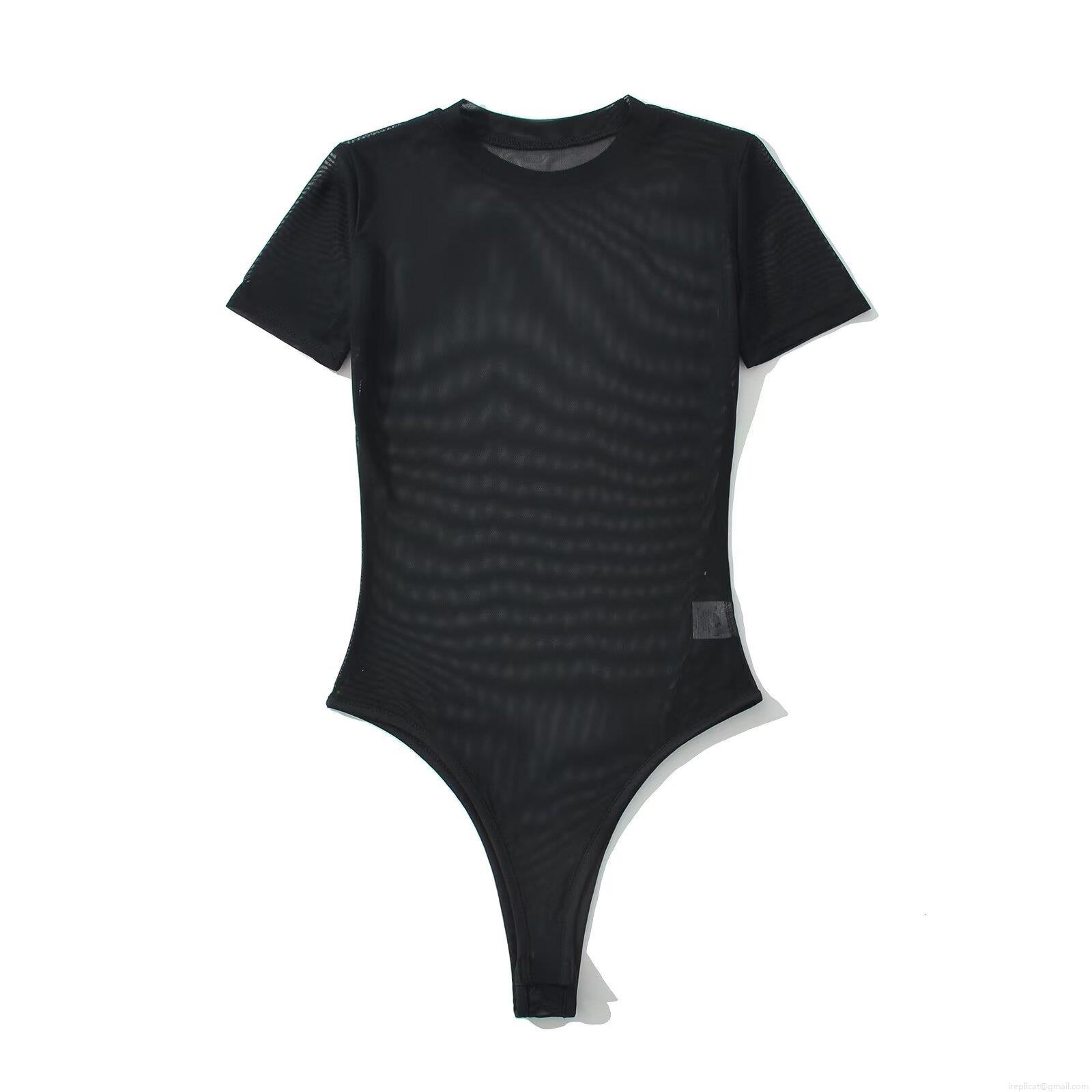 • Women's Sexy See-Through Polyester Mesh Bodysuit Round Neck Short Sleeve Solid Color Slim Fit Jumpsuit Leotard Top For Streetwear Daily Wear