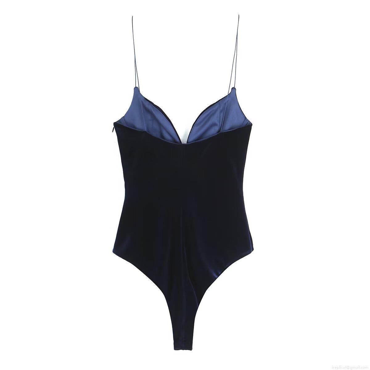 • Women's Sexy Velvet Spaghetti Strap Bodysuit Deep V Neck Sleeveless Slim Fit Leotard Body Suit With Crotch Snaps Elegant Party Clubwear Jumpsuits