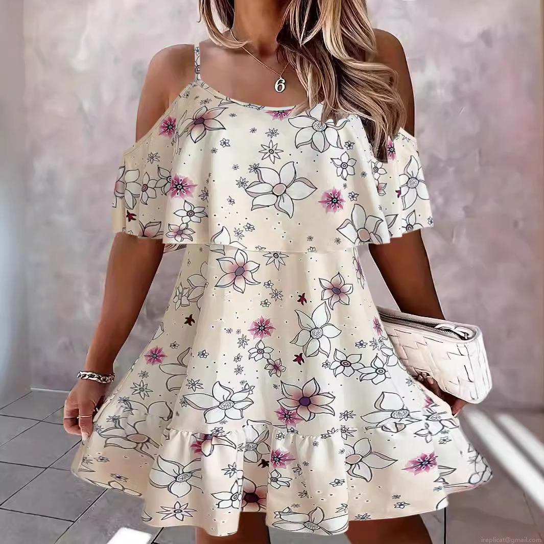 • Women's Bohemian Floral Print Cold Shoulder Dress Ruffle Cami Sleeveless Mini Dress Summer Vacation Polyester Spandex Plus Size Elegant Clothing