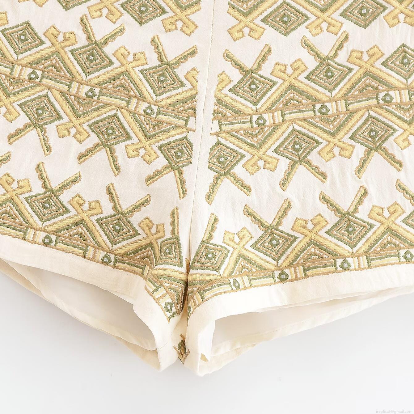 • Women's Bohemian Geometric Embroidered High Waist Shorts Summer Casual Versatile 100% Polyester Fabric Hot Pants For Vacation Beach Ladies