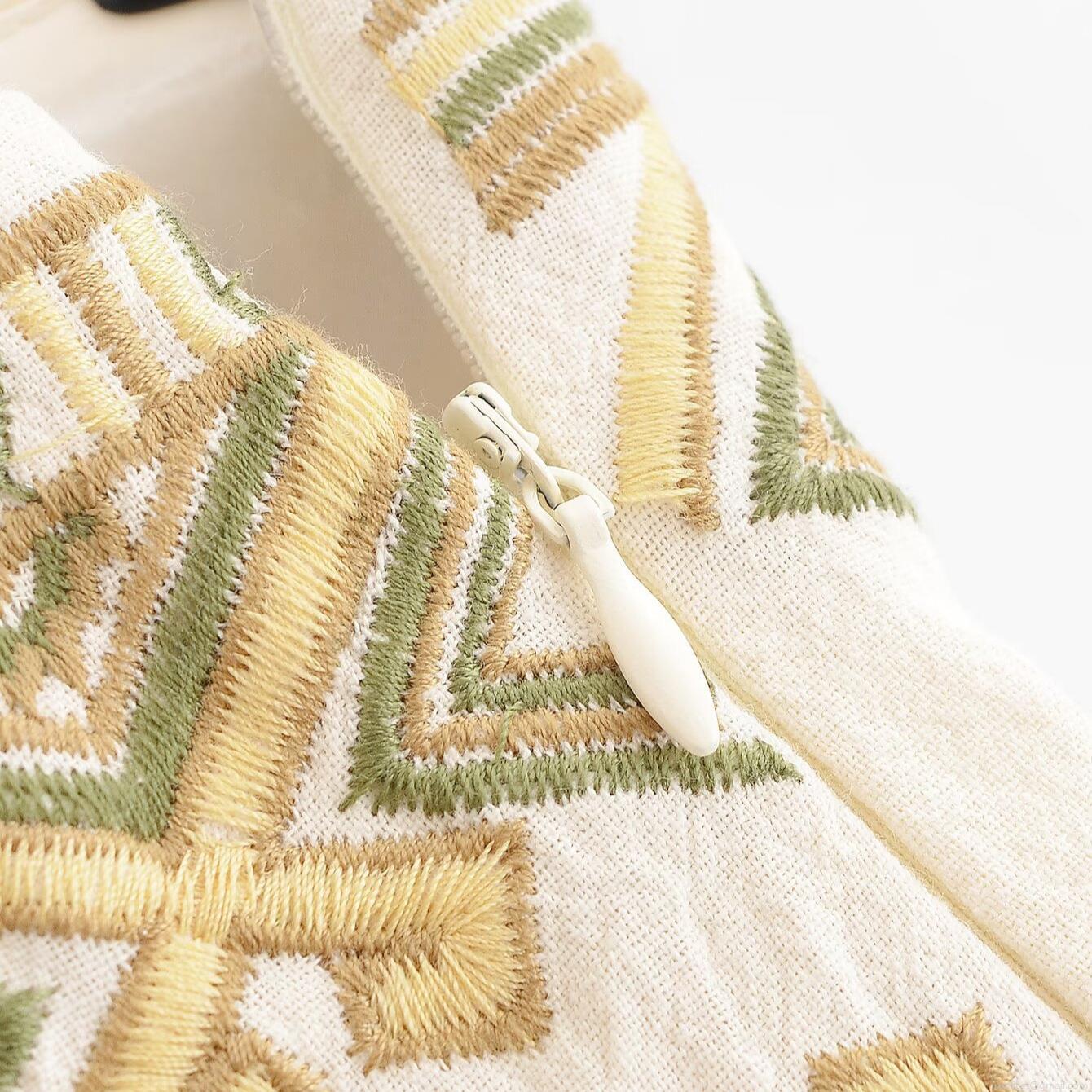 Embroidery, Geometric Patterns, Retro, High-waisted