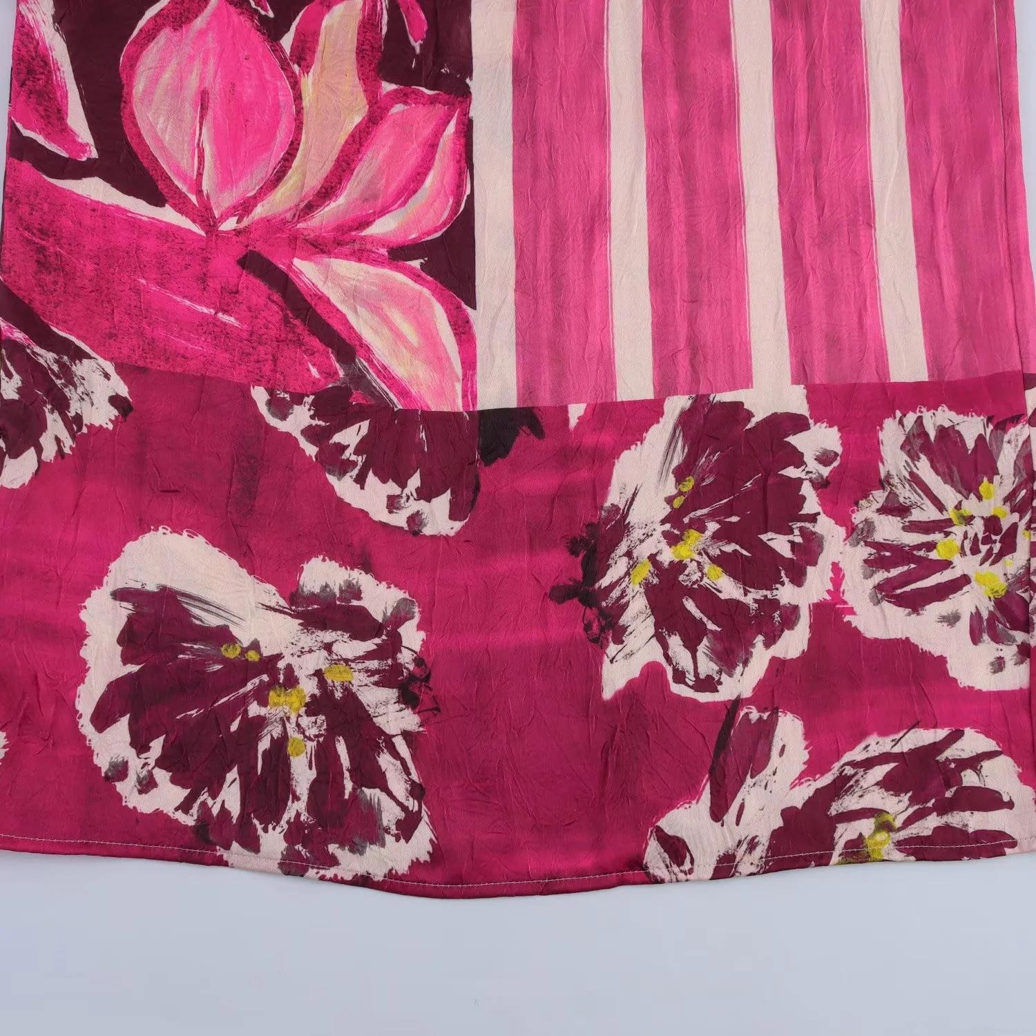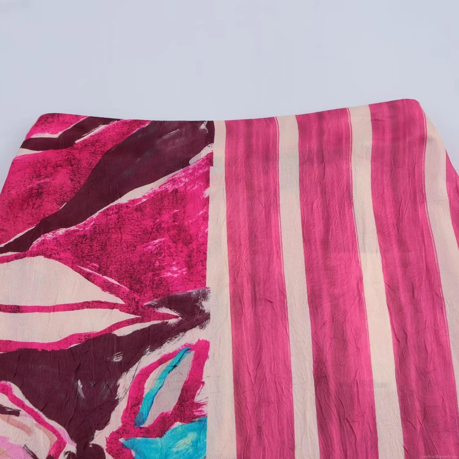 Women Elegant Floral Striped Patchwork Satin Midi Skirt High Waist Side Split A-Line Long Skirt Bohemian Office Party Lady Bottoms