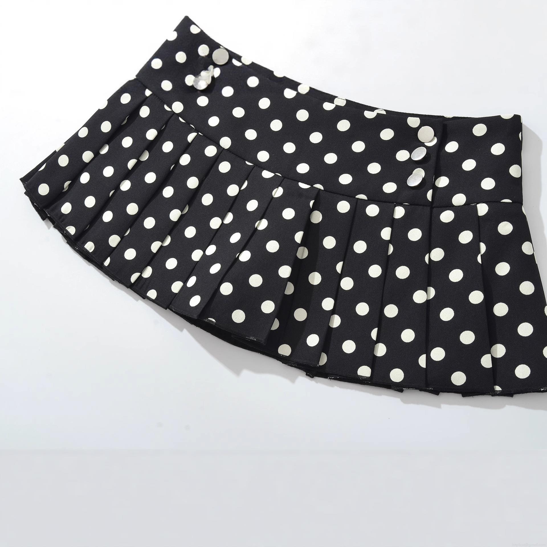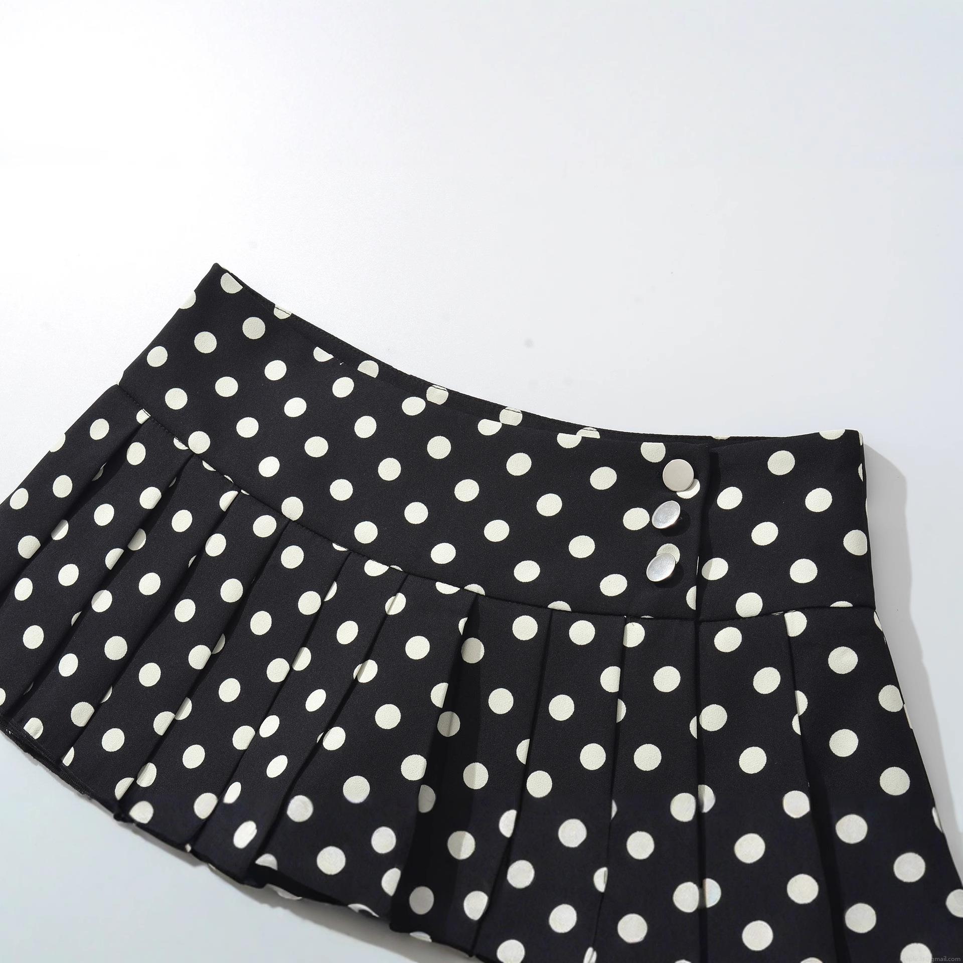 • Women High Waist Polka Dot Pleated Mini Skirt Sexy A-Line Short Skirt With Side Buttons 100% Polyester Streetwear Party Beach Ladies Fashion Skirts