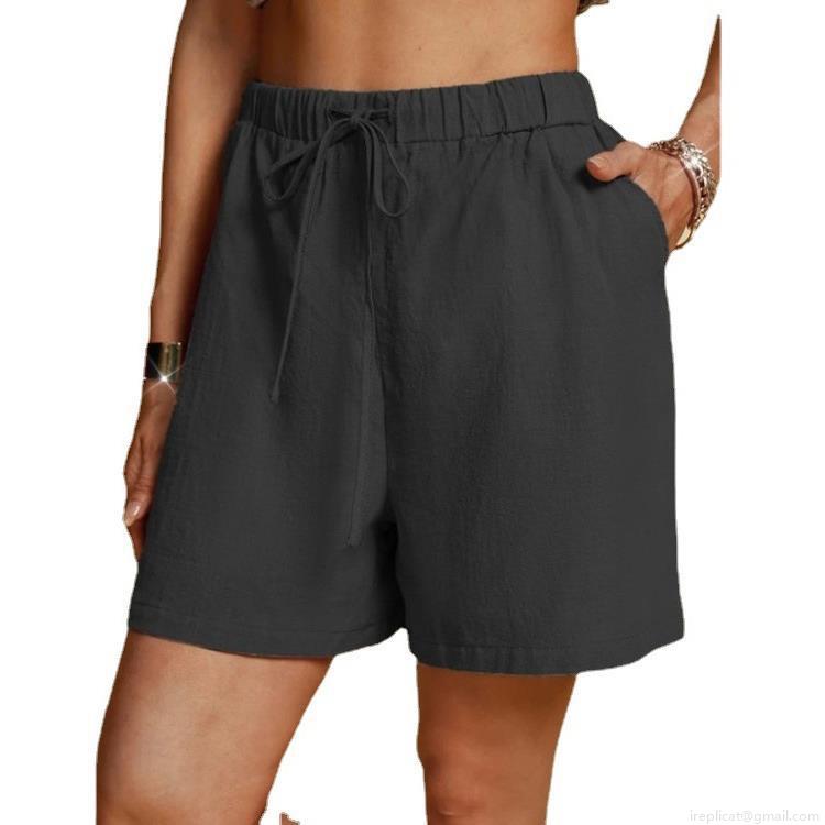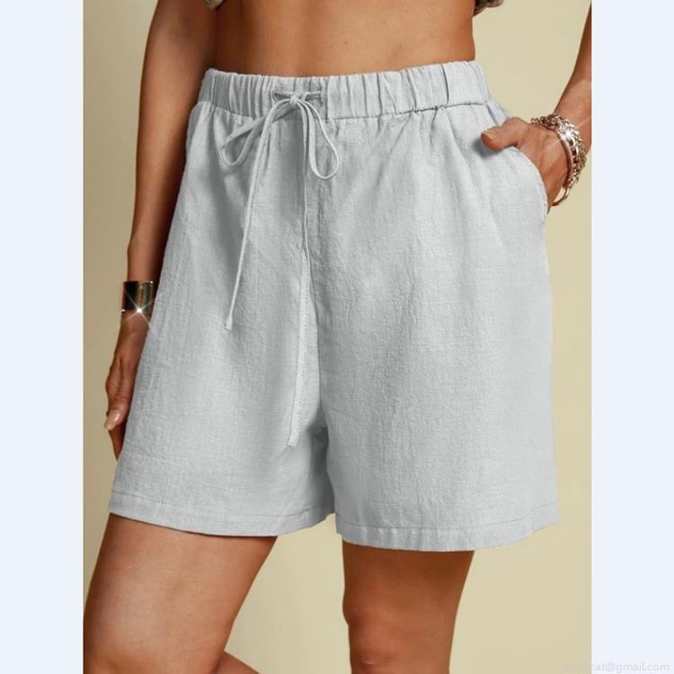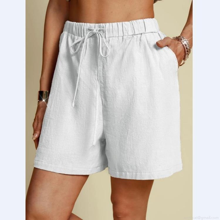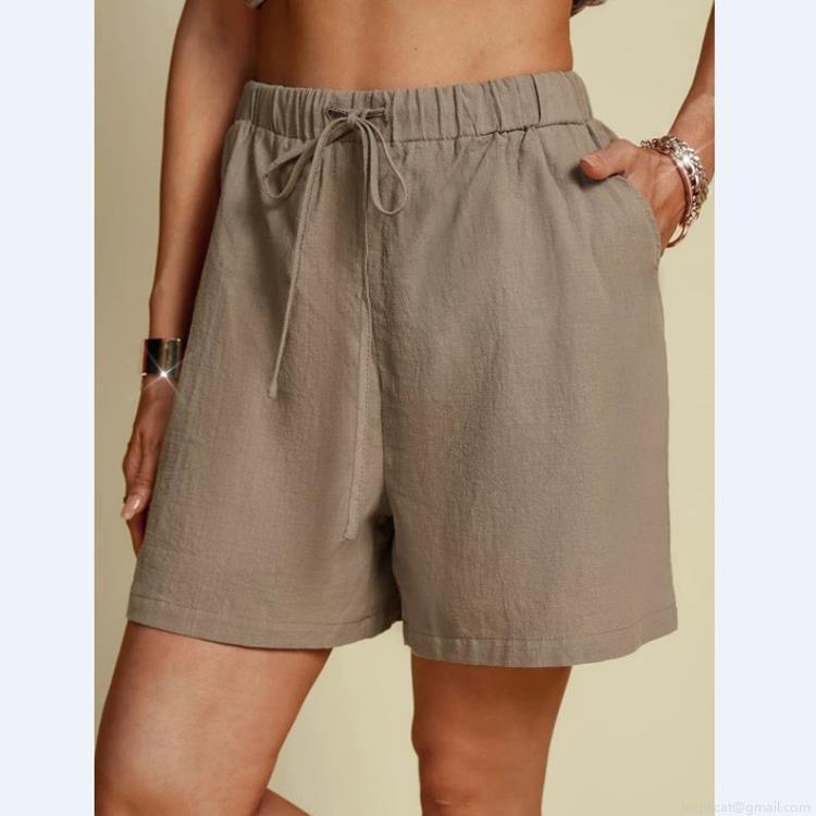 • Women's Casual Cotton Linen Shorts High Waist Elastic Drawstring Wide Leg Shorts Summer Loose Breathable Solid Color Shorts with Pockets for Women