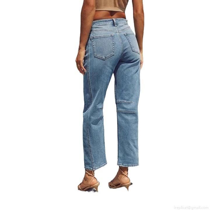 • Women's Casual Straight Leg Denim Jeans High Waist Washed Cotton Blend Stitched Nine-Point Trousers Fashion Streetwear For Daily Wear