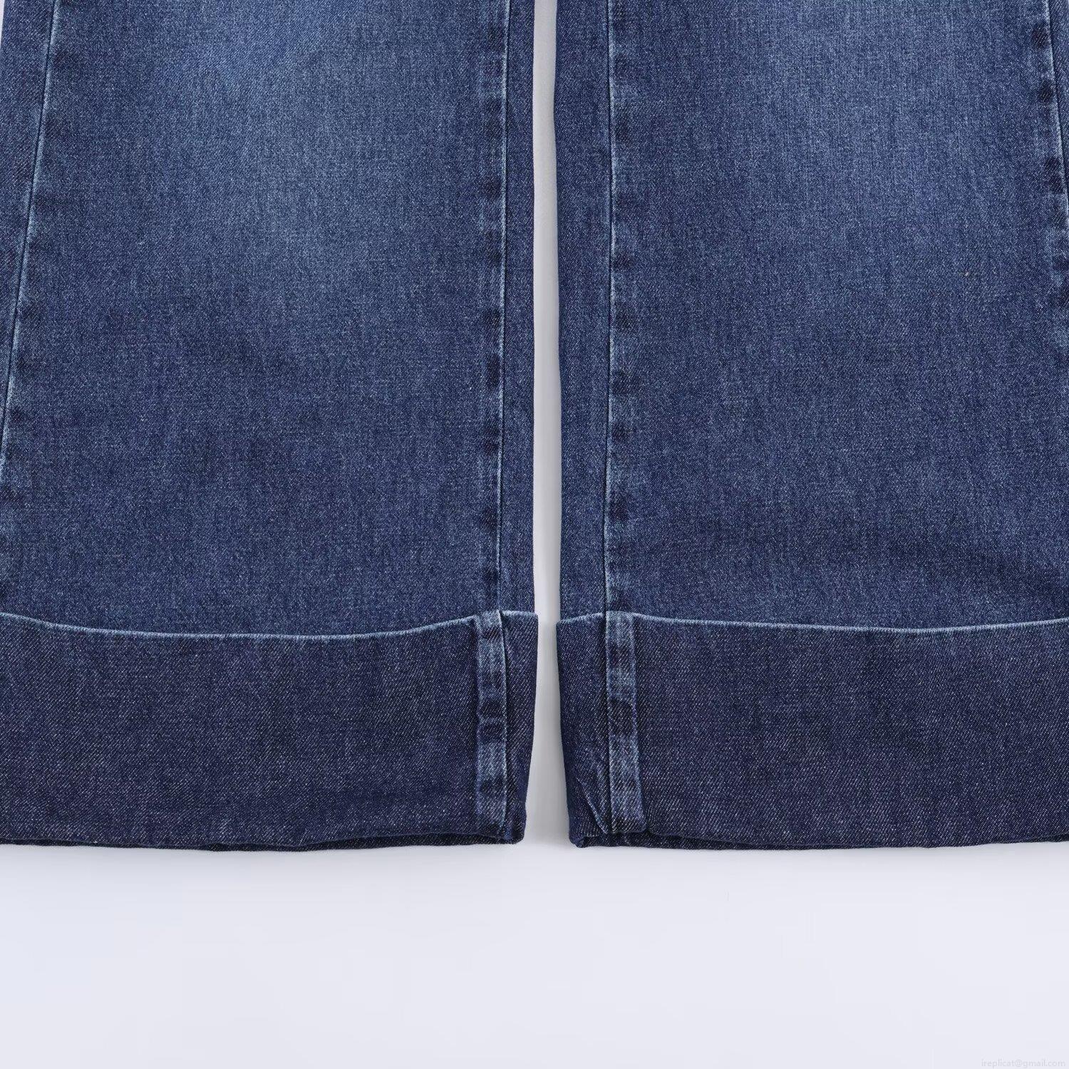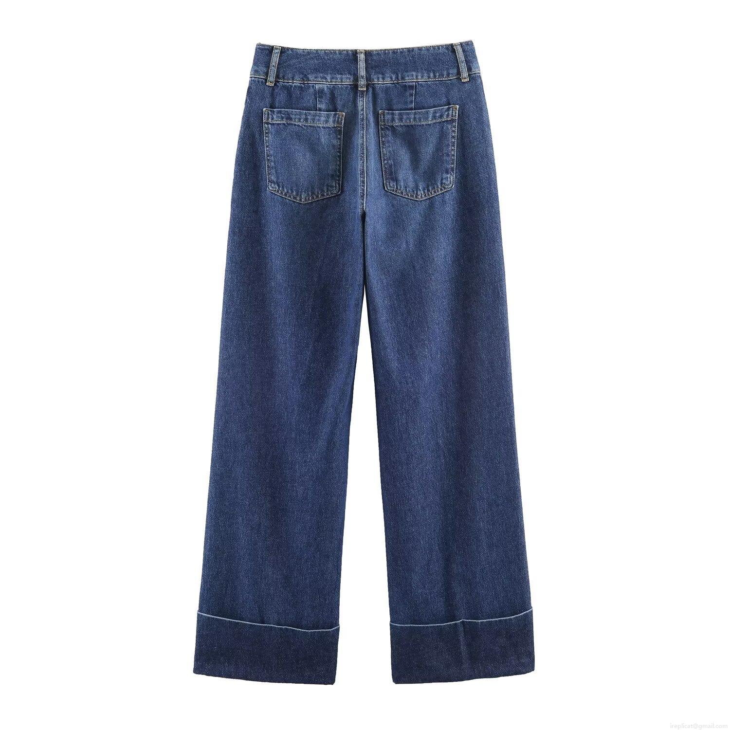 • Women's Casual Straight Leg Denim Jeans With Wide Folded Cuffed Hem Low Waist Indigo Blue Washed Cotton Trousers For Daily Wear Fashion