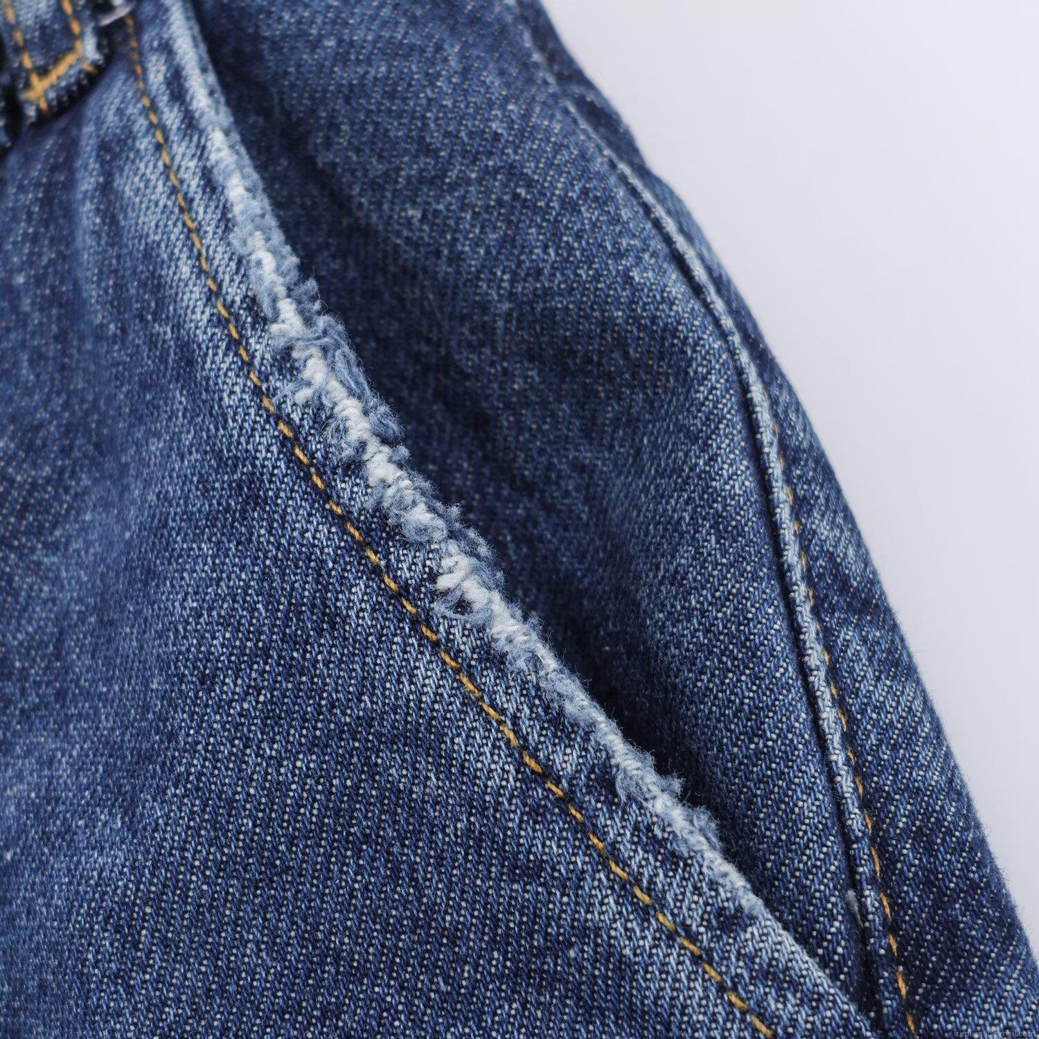 Women's Casual Straight Leg Denim Jeans With Wide Folded Cuffed Hem Low Waist Indigo Blue Washed Cotton Trousers For Daily Wear Fashion