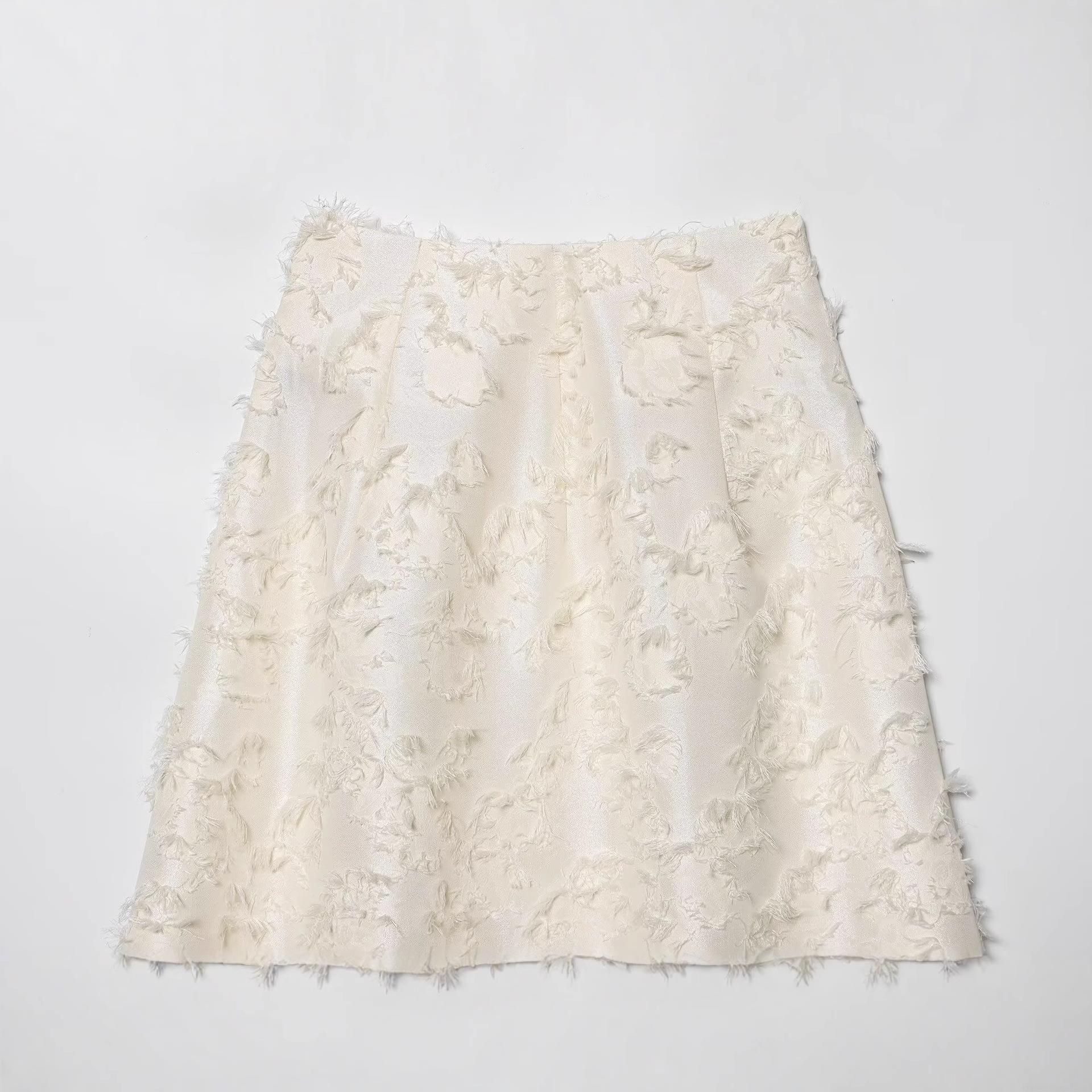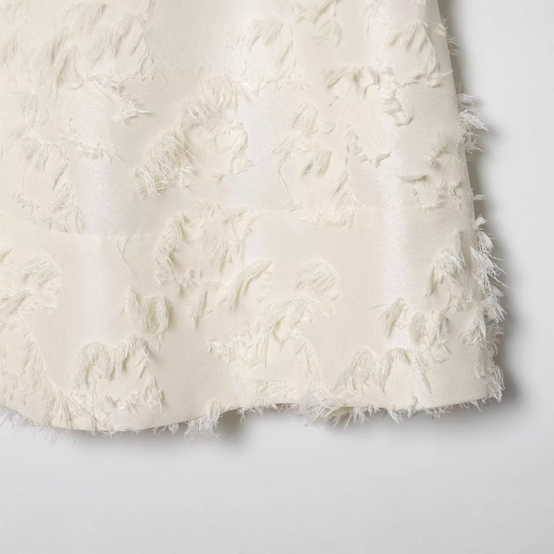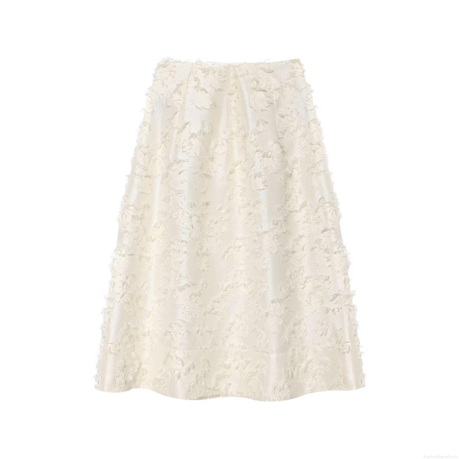 • Women's Elegant Creamy White Tassel A-Line Skirt High Waist Feather Texture Mid-Length Skirt For Party Daily Fashion Casual Skirts Polyester Skirts