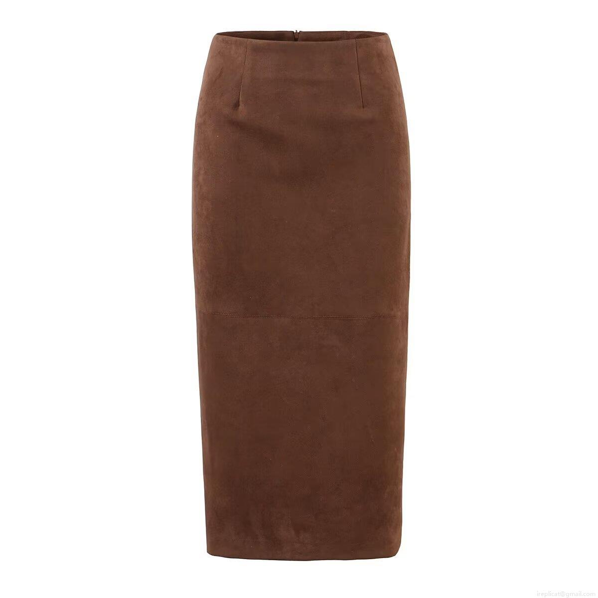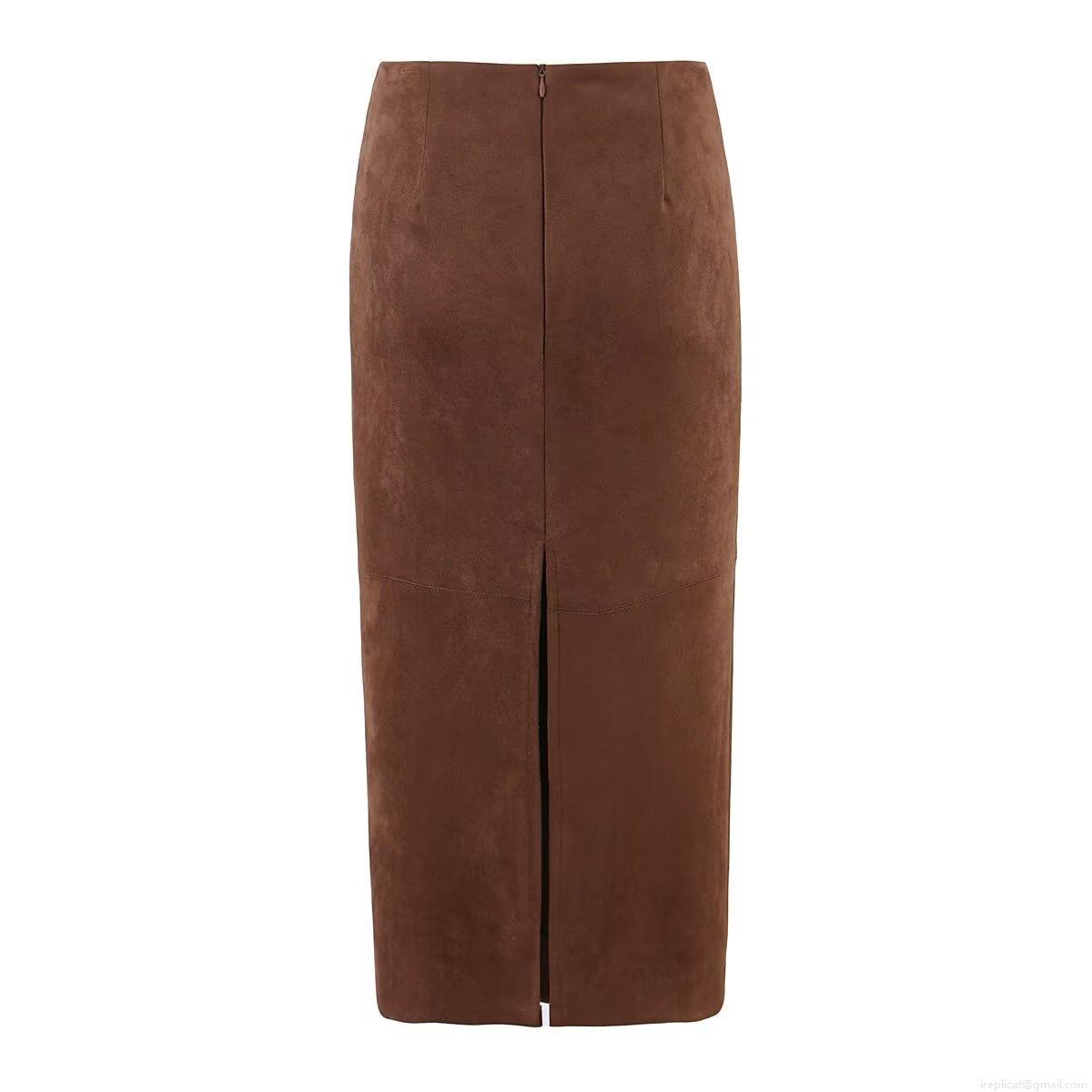 • Women's High Waist Faux Suede Midi Pencil Skirt With Slit Solid Color Bodycon Straight Skirt For Autumn Winter Streetwear Party Office Daily Casual