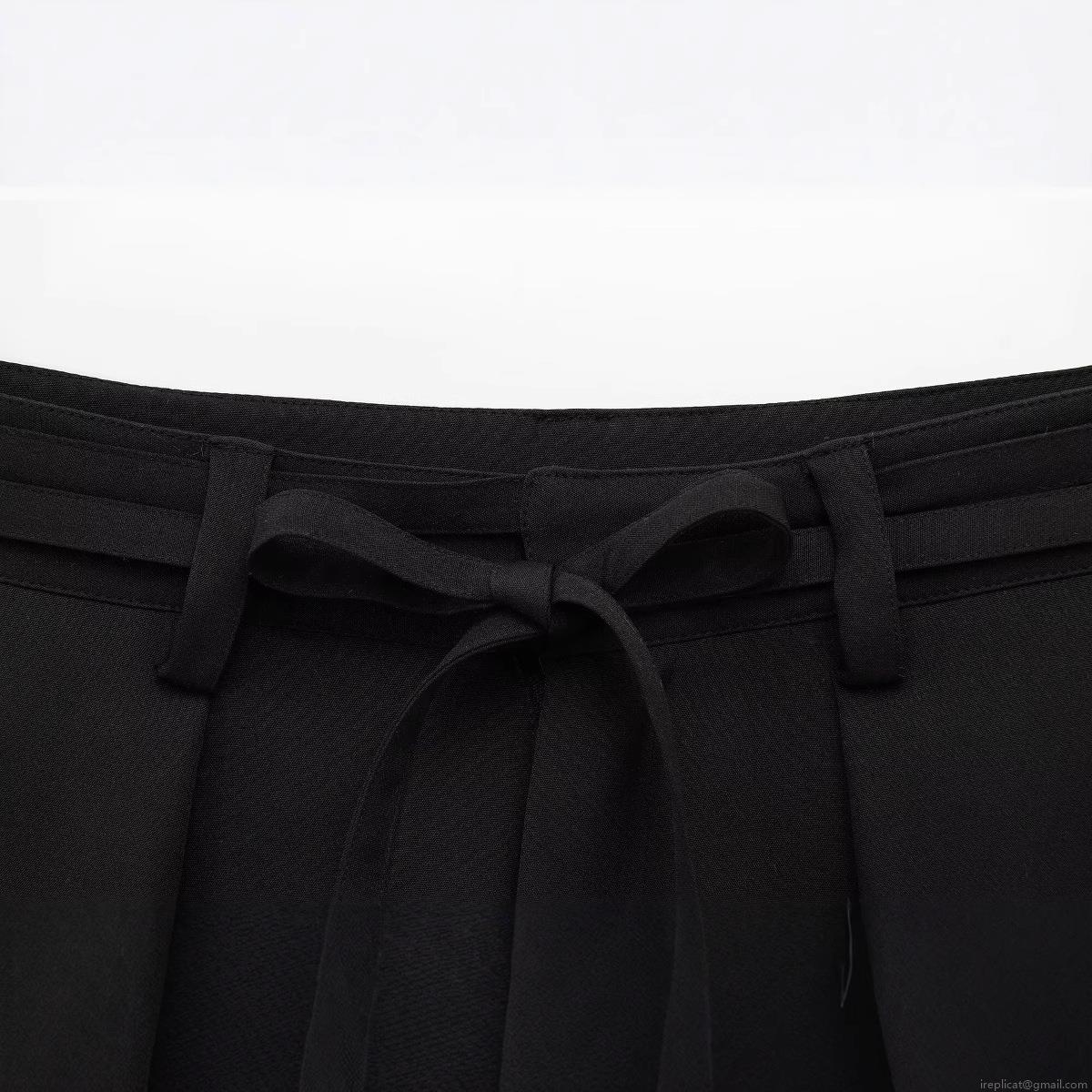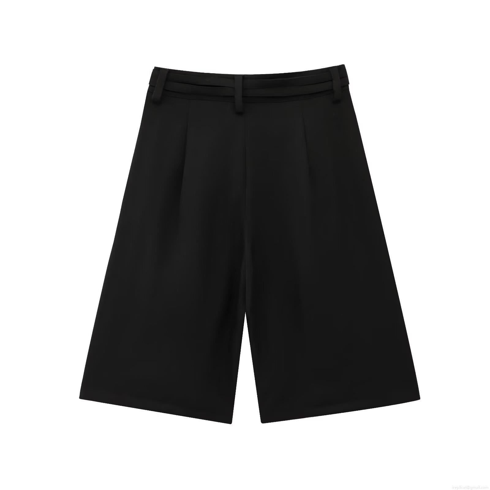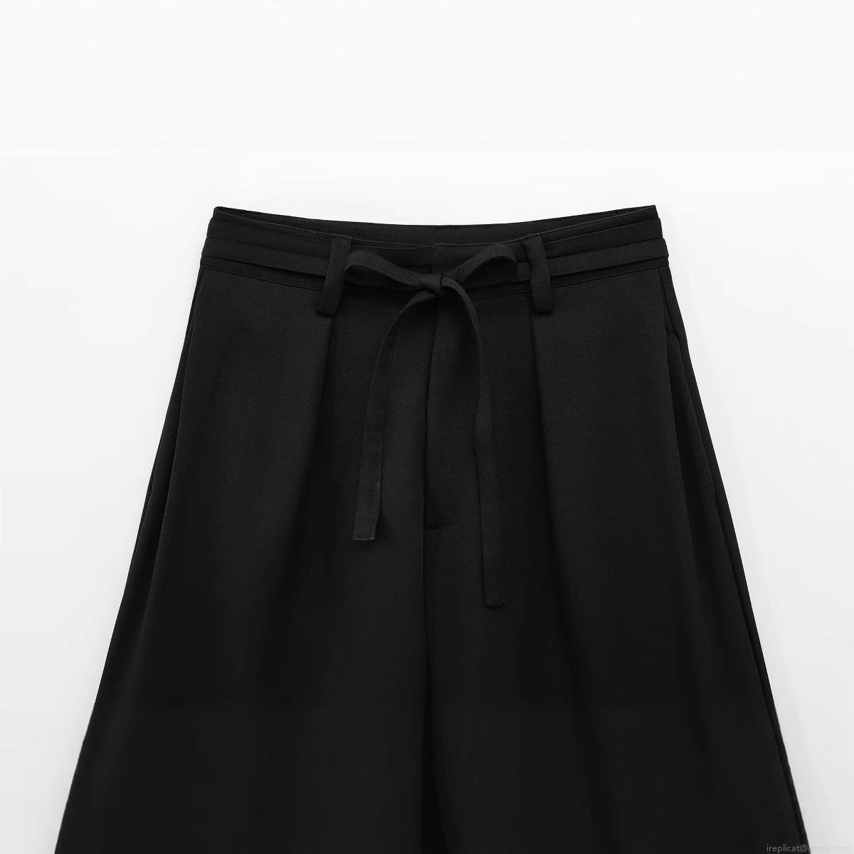 • Women's High Waist Pleated Wide Leg Shorts With Bow Tie Belt Casual Solid Black Polyester Shorts For Summer Daily Fashion Wear