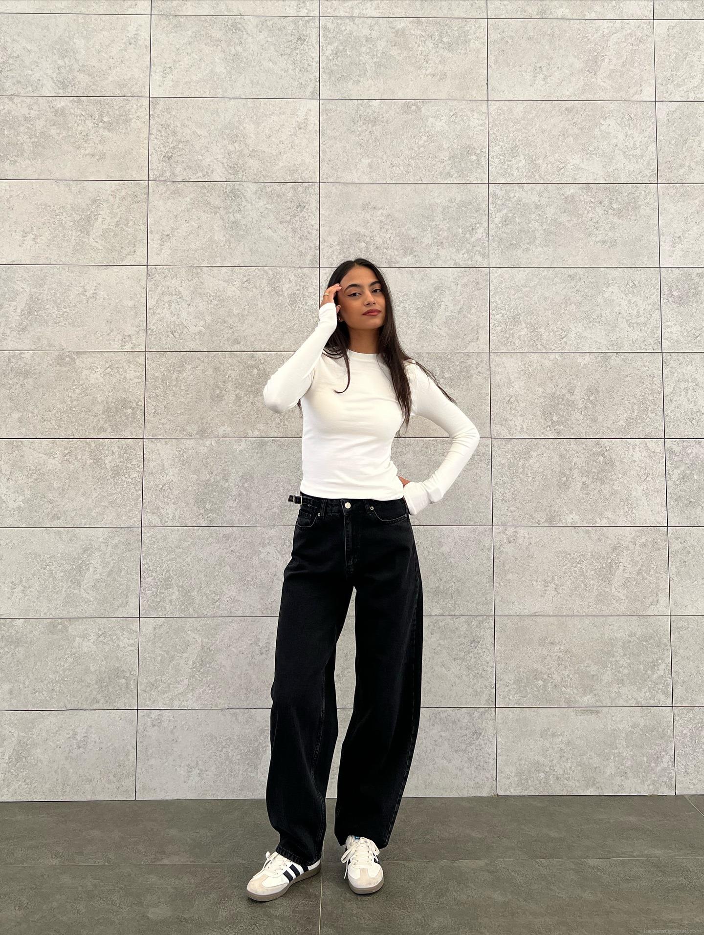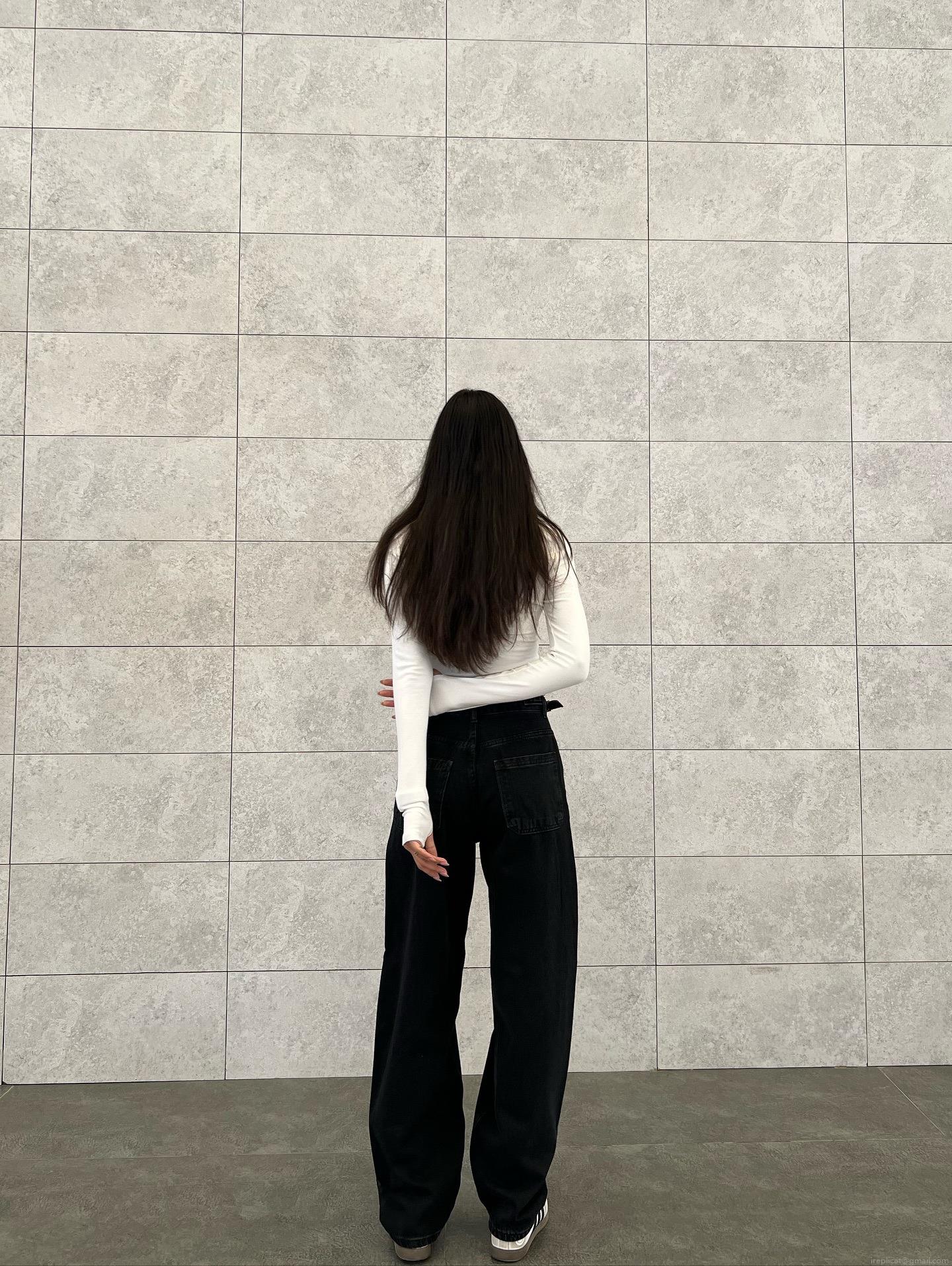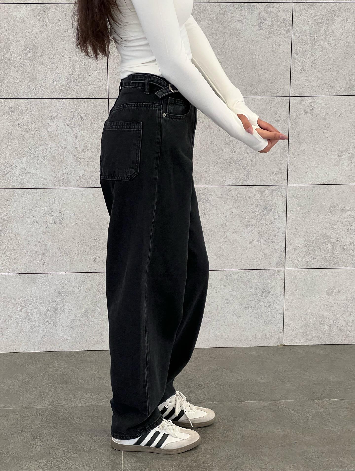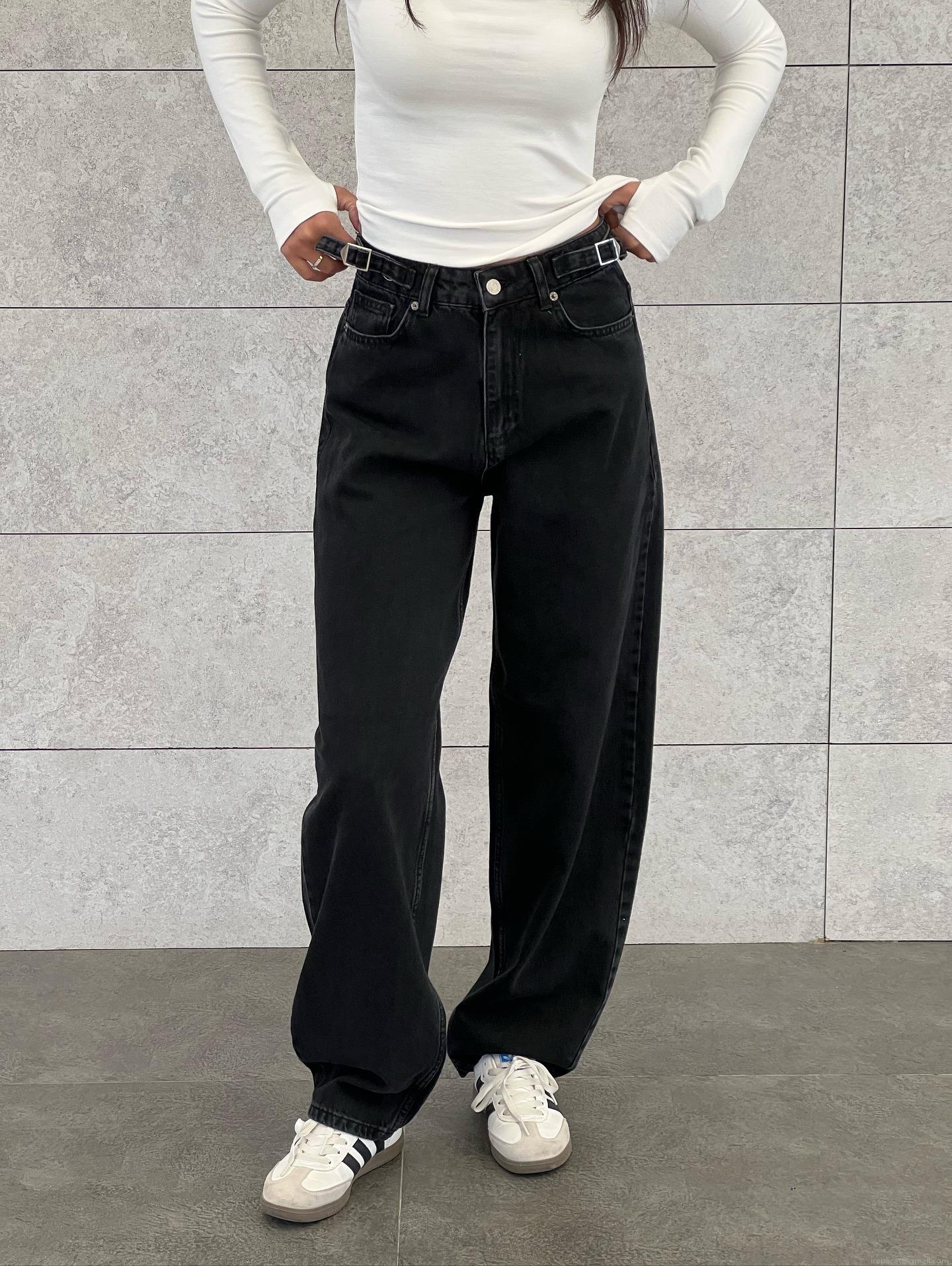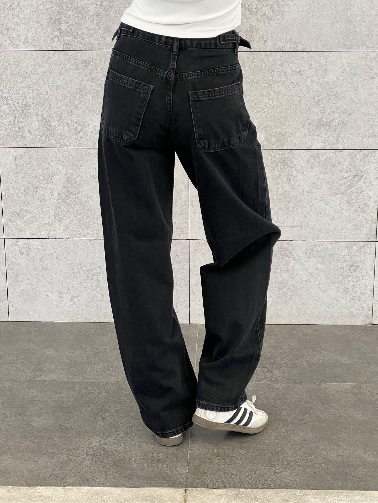 • Women's High Waisted Black Wide Leg Jeans Retro American Streetwear 100% Cotton Denim Floor Length Flare Pants Elastic Waist Loose Fit Trousers