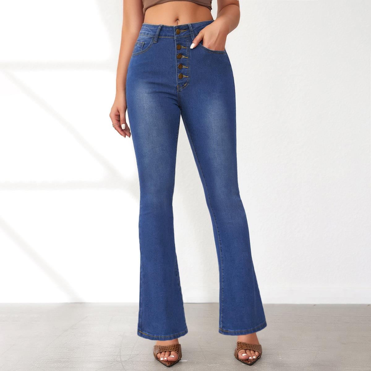 • Women's High Waisted Multi Button Flare Jeans Cotton Blend Slim Fit Washed Denim Bell Bottom Long Pants For Commute Vintage Fashion