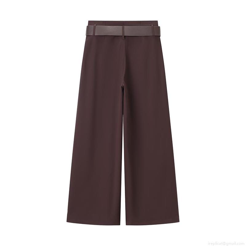 • Women's High Waisted Straight Wide Leg Pants With Belt Coffee Brown 100% Polyester Casual Long Trousers For Work Office Fashion Ladies Apparel