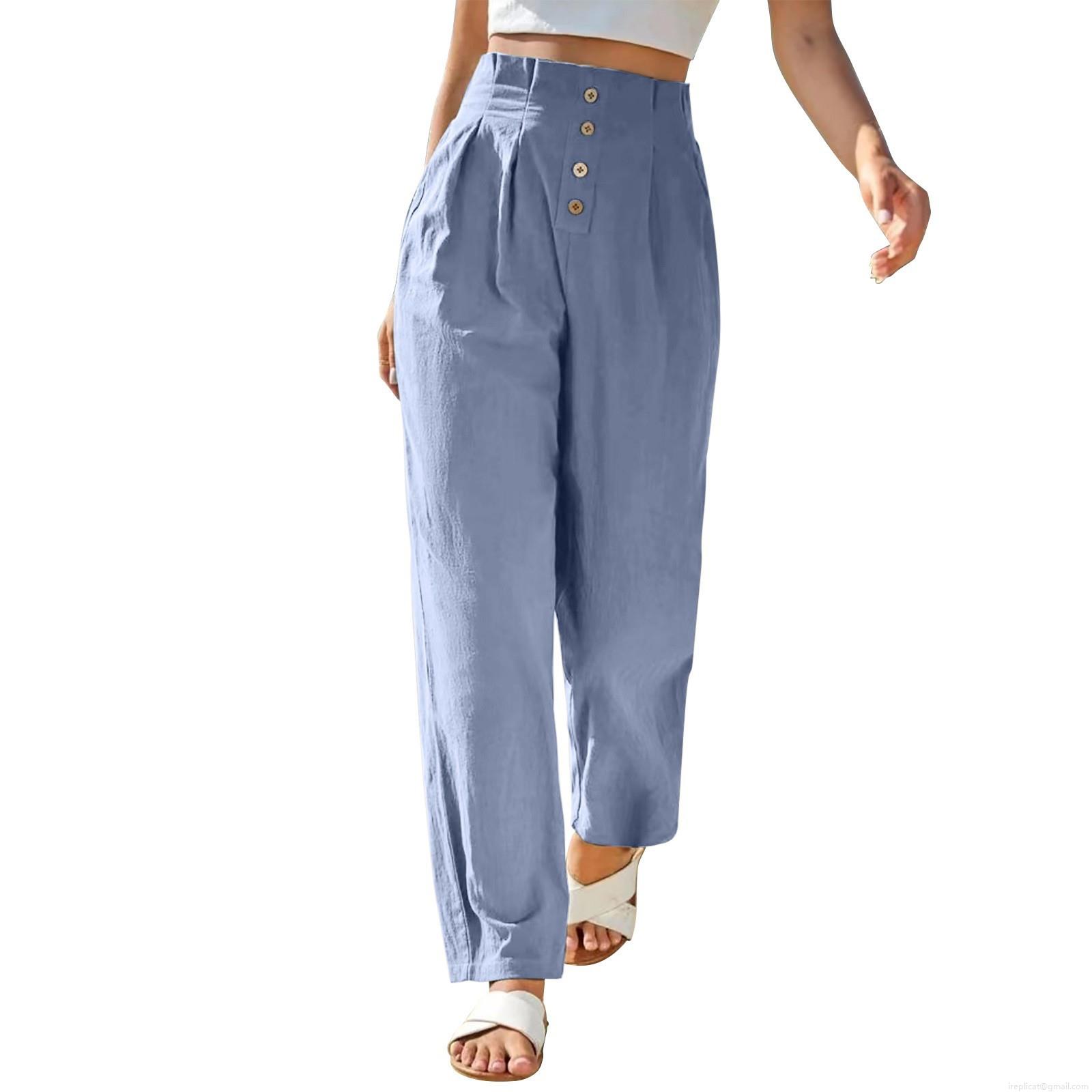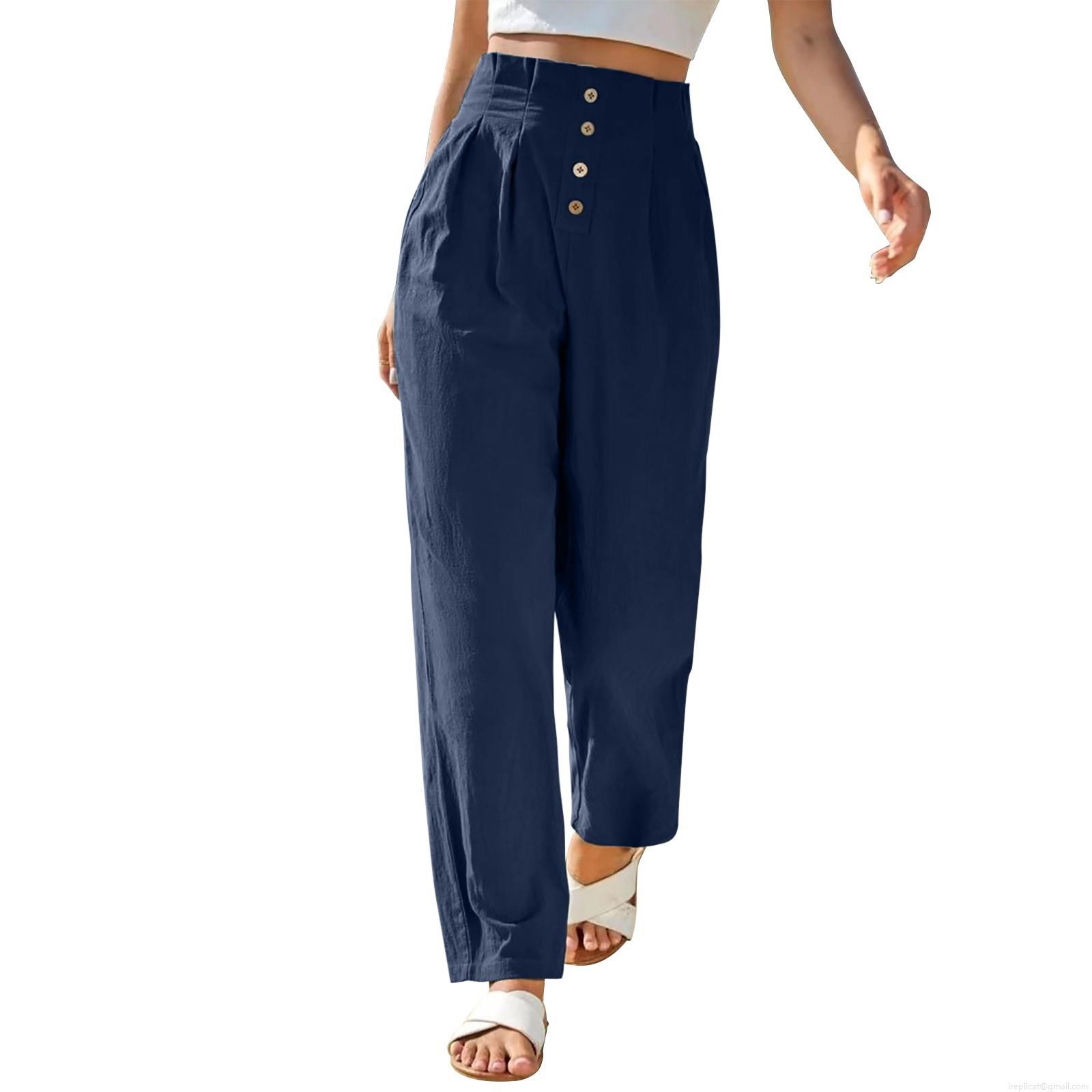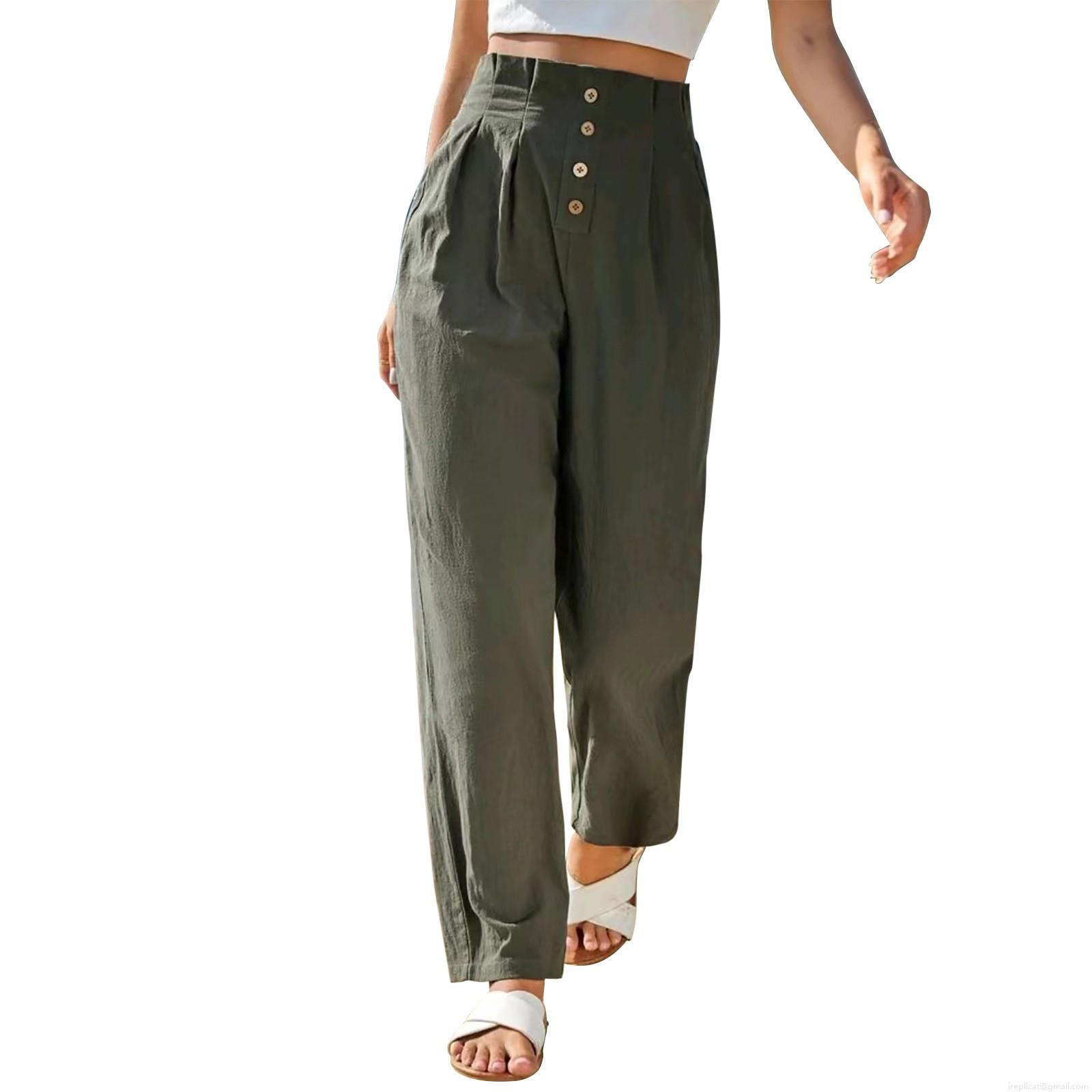 • Women's High Waisted Wide Leg Pants Cotton Linen Button Fly Loose Casual Trousers For Beach Vacation Fashion Daily Wear Comfortable Breathable Straight Leg Pants
